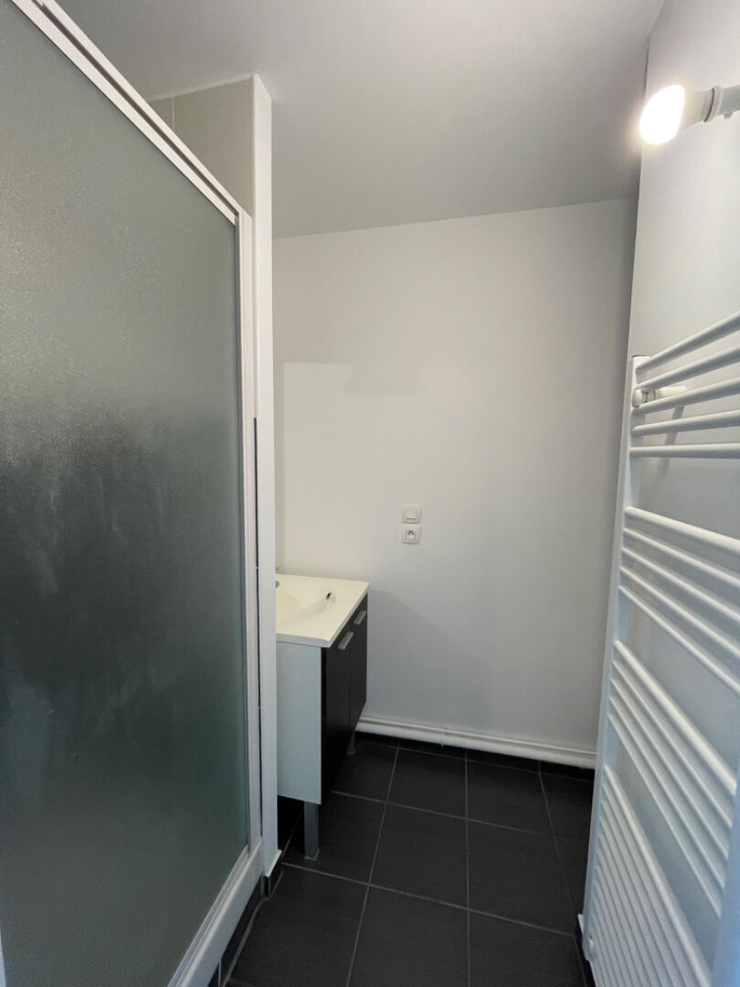 Blanche de Castille à 200 m, T3 duplex ( 63,5 m2 Carrez et 74 m2 au sol ) dans résidence de 2011, vue sur verdure, au 5 éme et dernier étage, expo sud/ouest offrant au rdc : Entrée avec placard sur séjour , cuisine aménagée et semi-équipée (plaques et hotte) donnant sur terrasse ( 26 m2 ), chambre avec placard, salle d'eau avec wc,