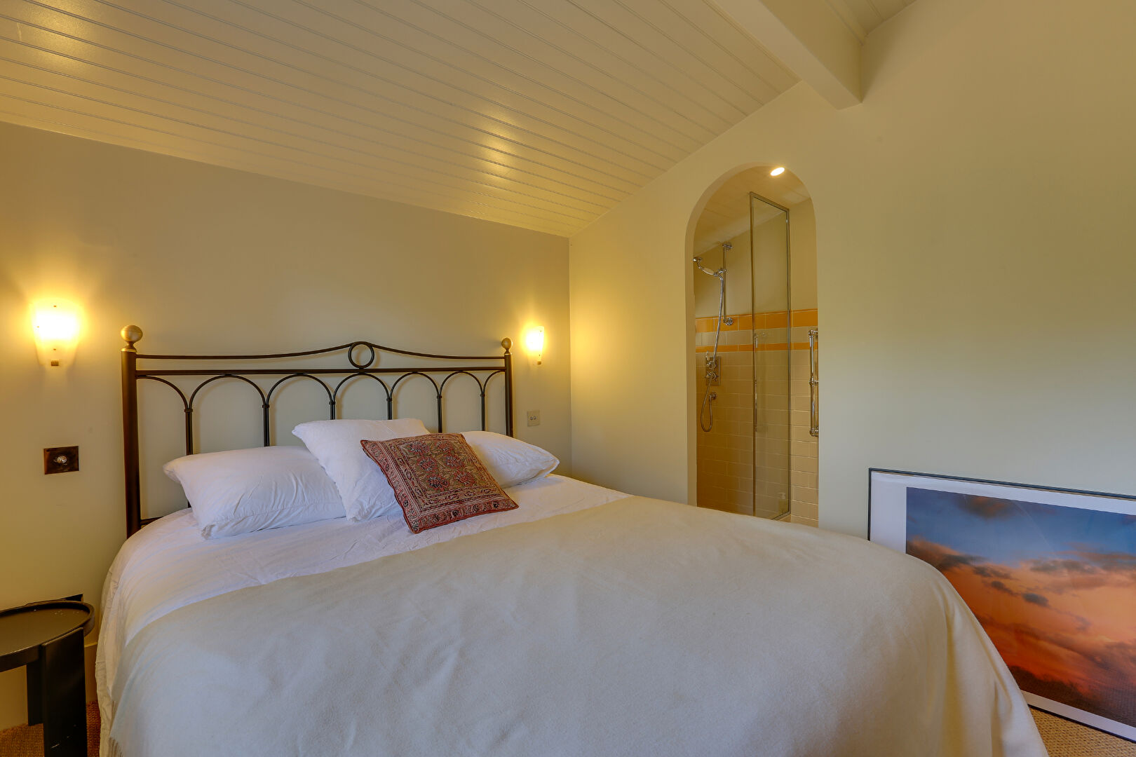 Vous découvrirez au niveau principal : l'entrée donnant sur le salon, un espace repas avec banquette sur mesure, une grande cuisine moderne donnant accès à la terrasse et piscine, la chambre parentale vue piscine et jardin, une salle d'eau avec douche hammam et un wc indépendant.