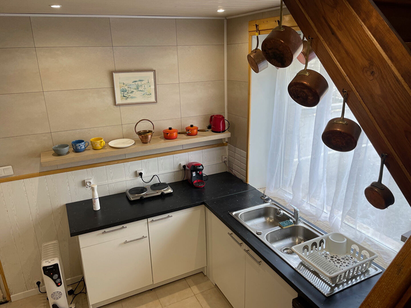 - Au rez-de-chaussée : un salon avec un coin cuisine.