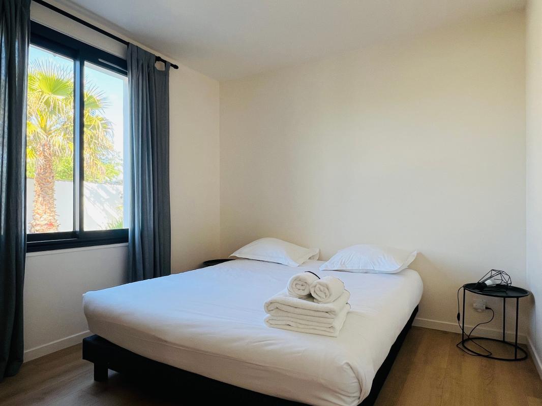 Une entrée avec vestiaire, une chambre, une salle d'eau avec wc, une pièce de vie spacieuse et lumineuse avec cheminée à insert donnant sur la terrasse et la piscine, un coin cuisine aménagé et équipé avec buanderie-arrière cuisine, un salon donnant sur autre terrasse .