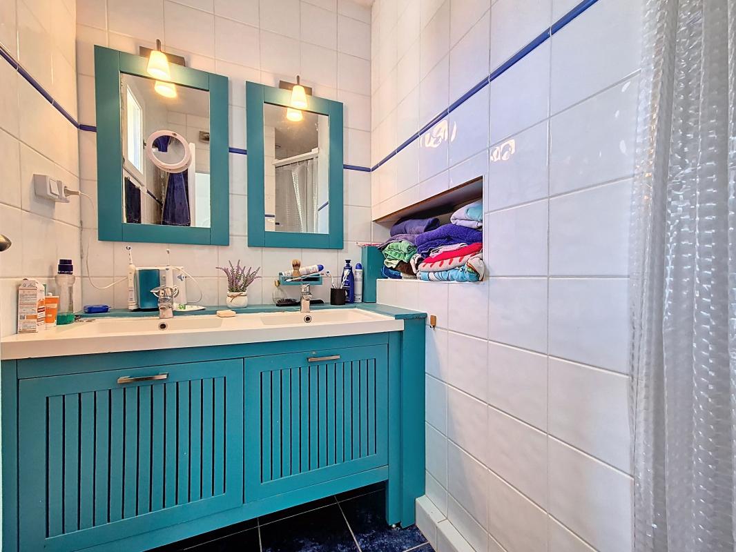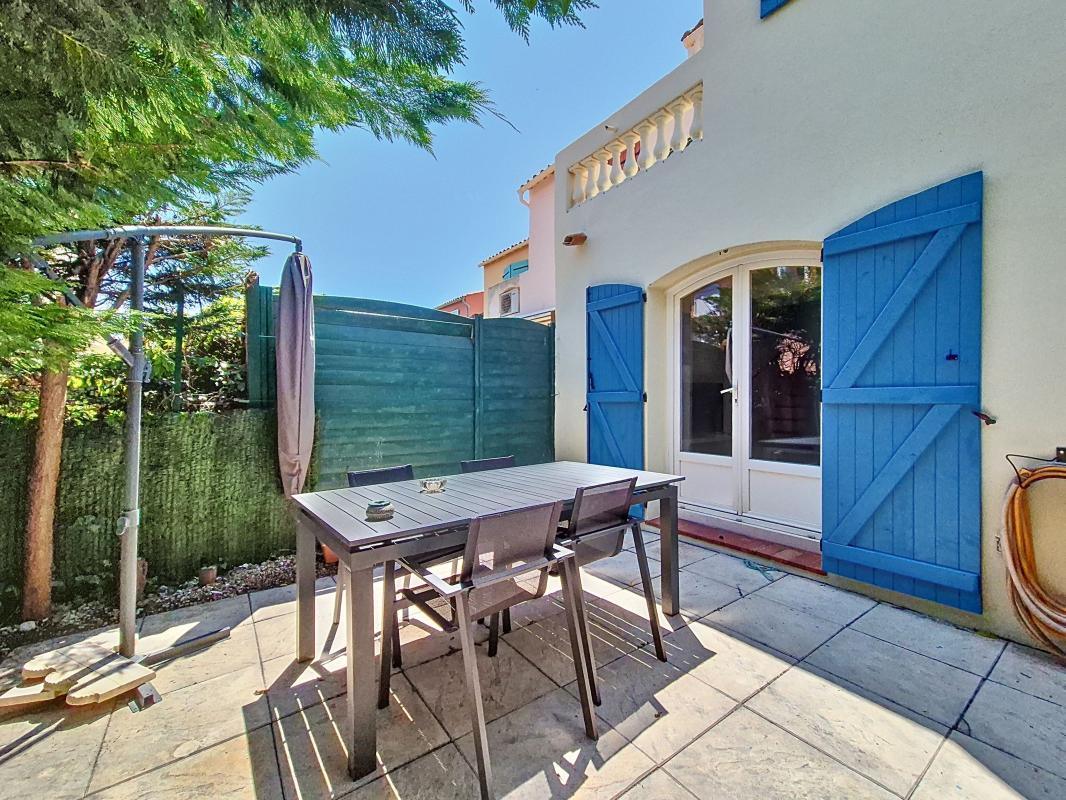 Dans résidence sécurisée avec gardien, comme dans un village, agréable maison mitoyenne au calme d'une surface habitable de 88 m² (75 m ²Loi Carrez). Elle se compose d'une entrée, garage aménagé (possible bureau), wc, cuisine ouverte, séjour avec cheminée, jardin/terrasse; à l'étage trois chambres dont une avec point d'eau, salle d'eau, wc indépendant. La maison bénéficie de la climatisation. Deux stationnements privatifs devant la maison. Charges annuelles 1080 € pour entretien espaces communs et gardien. Ce bien vous est proposé en Exclusivité par votre agence immobilière Orpi.