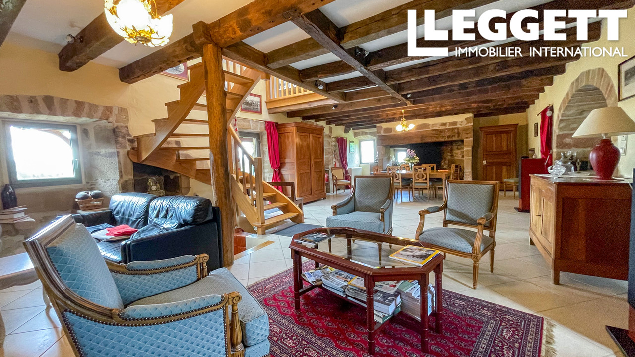 La maison principale compte une grande salle de billard en RDJ et une chambre en suite (accès indépendant) ; puis vous avez une grande cuisine ouverte et un immense séjour /salle à manger de 65 m2 avec deux cantous (et poêle alsacien) ; à l'étage, trois belles chambres.