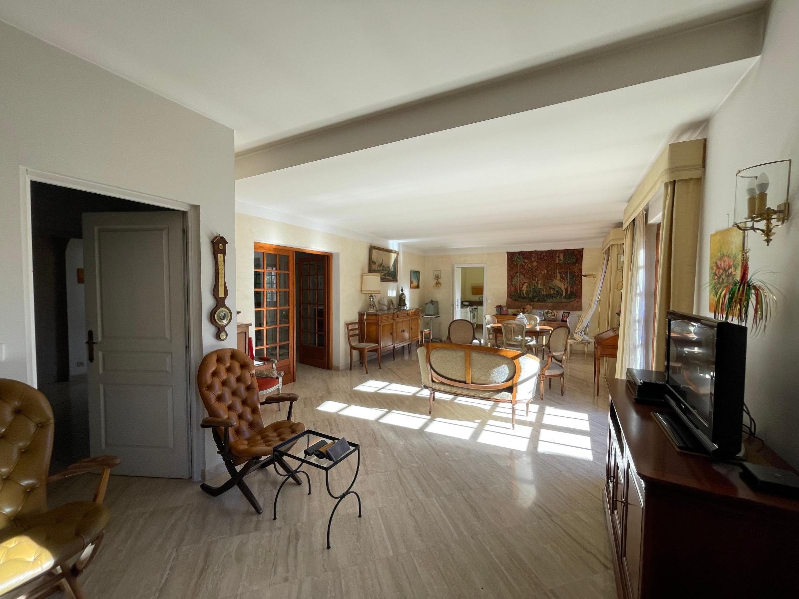 PERPIGNAN MASSILIA, située entre la Route de Canet et le Mas Vermeil, à 5 minutes de Cabestany, dans un quartier calme et apprécié, vous serez séduits par cette grande villa 4 faces traditionnelle de 224 m² environ sur un terrain clos et arborée de 504 m², idéale pour une grande famille ou pour ceux qui recherchent confort, tranquillité, espaces, dans l'un des secteurs les plus recherchés de Perpignan. Elle bénéficie d'une bonne qualité de construction, grands volumes, entrée, chambre avec climatisation, salle d'eau, bureau avec placard, grand salon / séjour climatisé de 40 m² donnant sur une terrasse à l'arrière, cuisine séparée équipée.