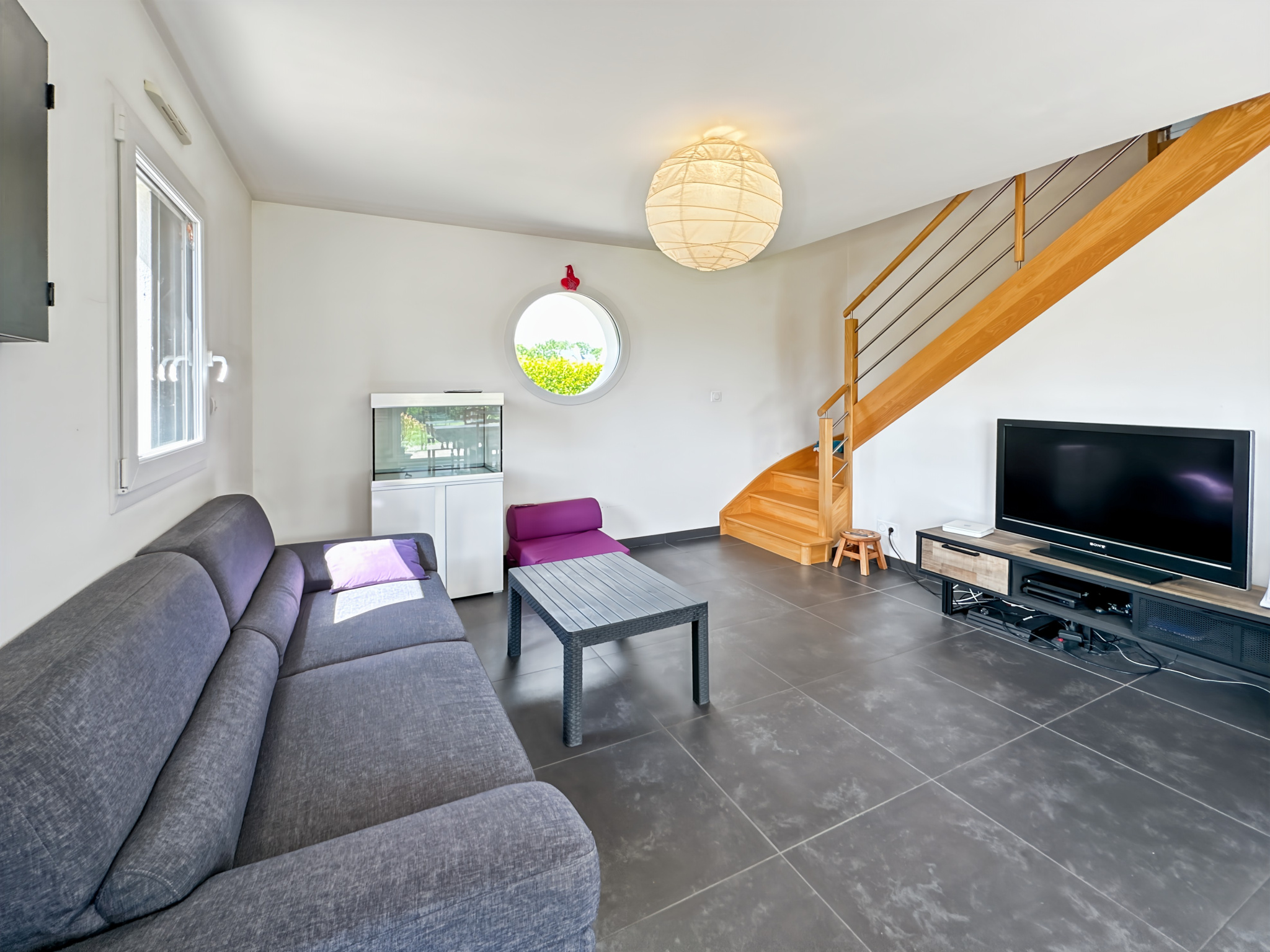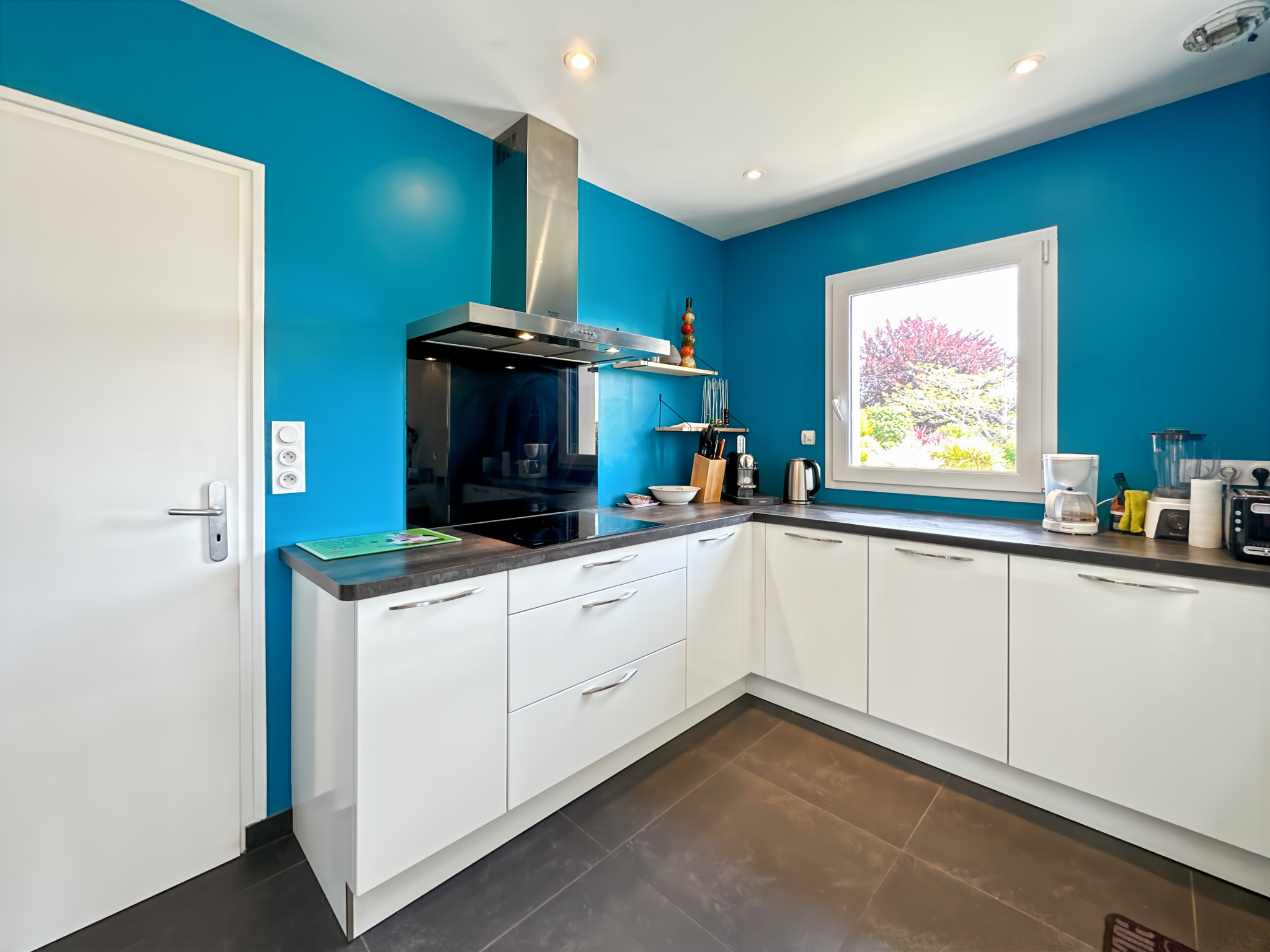 L'entrée dessert le salon/séjour avec cuisine ouverte, un cellier donnant accès au garage, une suite parentale.