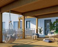 La résidence est située dans un éco-quartier. Les appartements sont orientés sur le coeur d'ilot, ils bénéficient d'une coursive faisant office de terrasse commune.