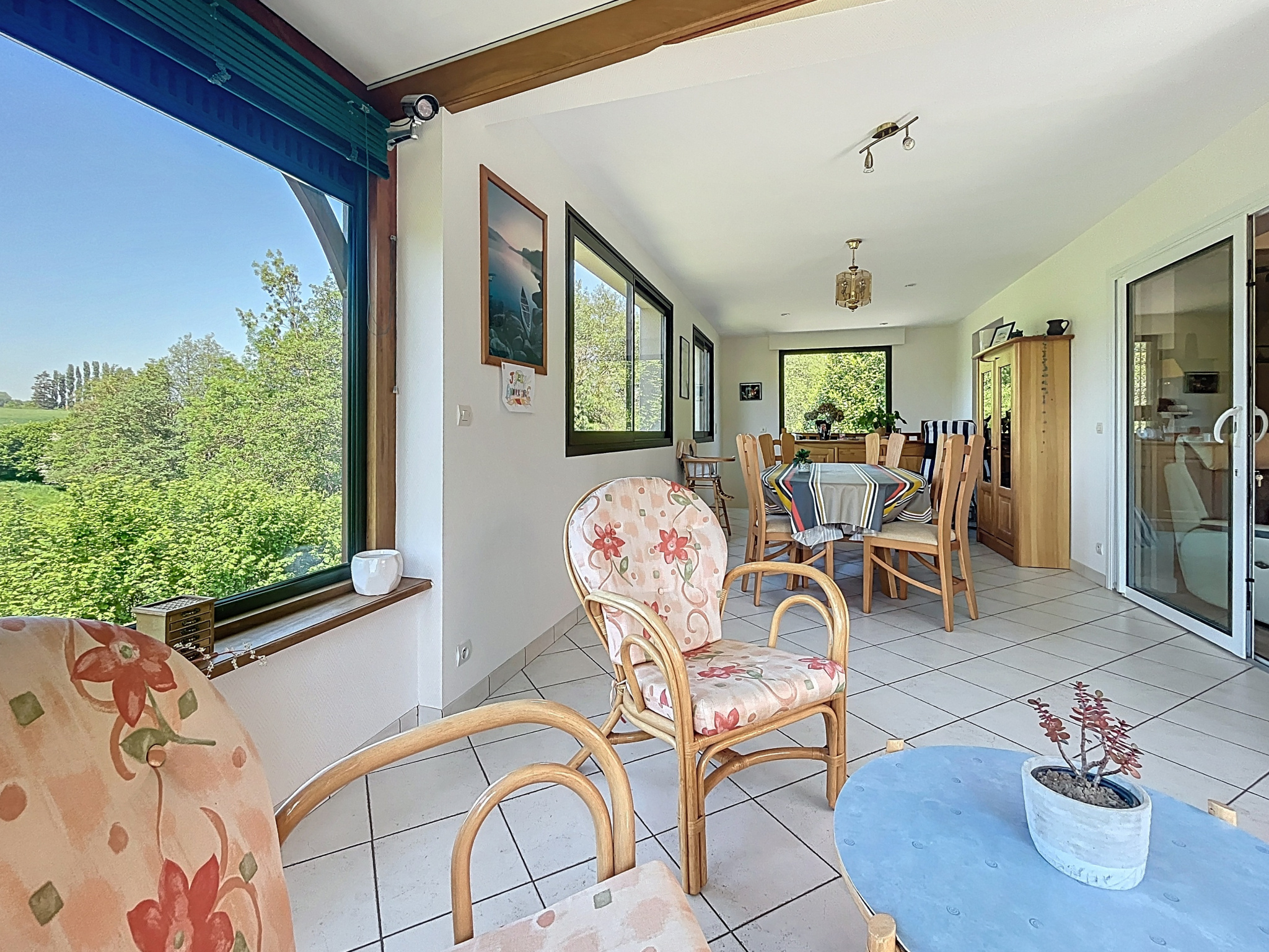 Elle se compose au rez-de-chaussée d'un agréable séjour avec insert, d'une cuisine aménagée et équipée, ainsi que d'une lumineuse pièce de vie issue d'une extension récente.