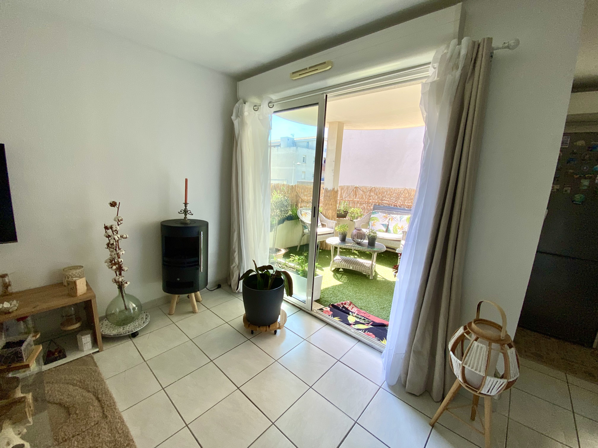 Séjour 25 m2 climatisé, ouvert sur une cuisine neuve et fonctionnelle