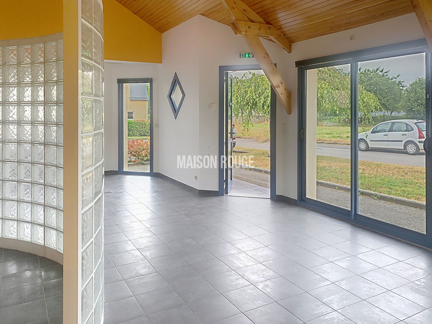 Actuellement aménagée en local commercial, cette maison contemporaine de plain-pied d'environ 91 m² offre de belles prestations et se compose comme suit :