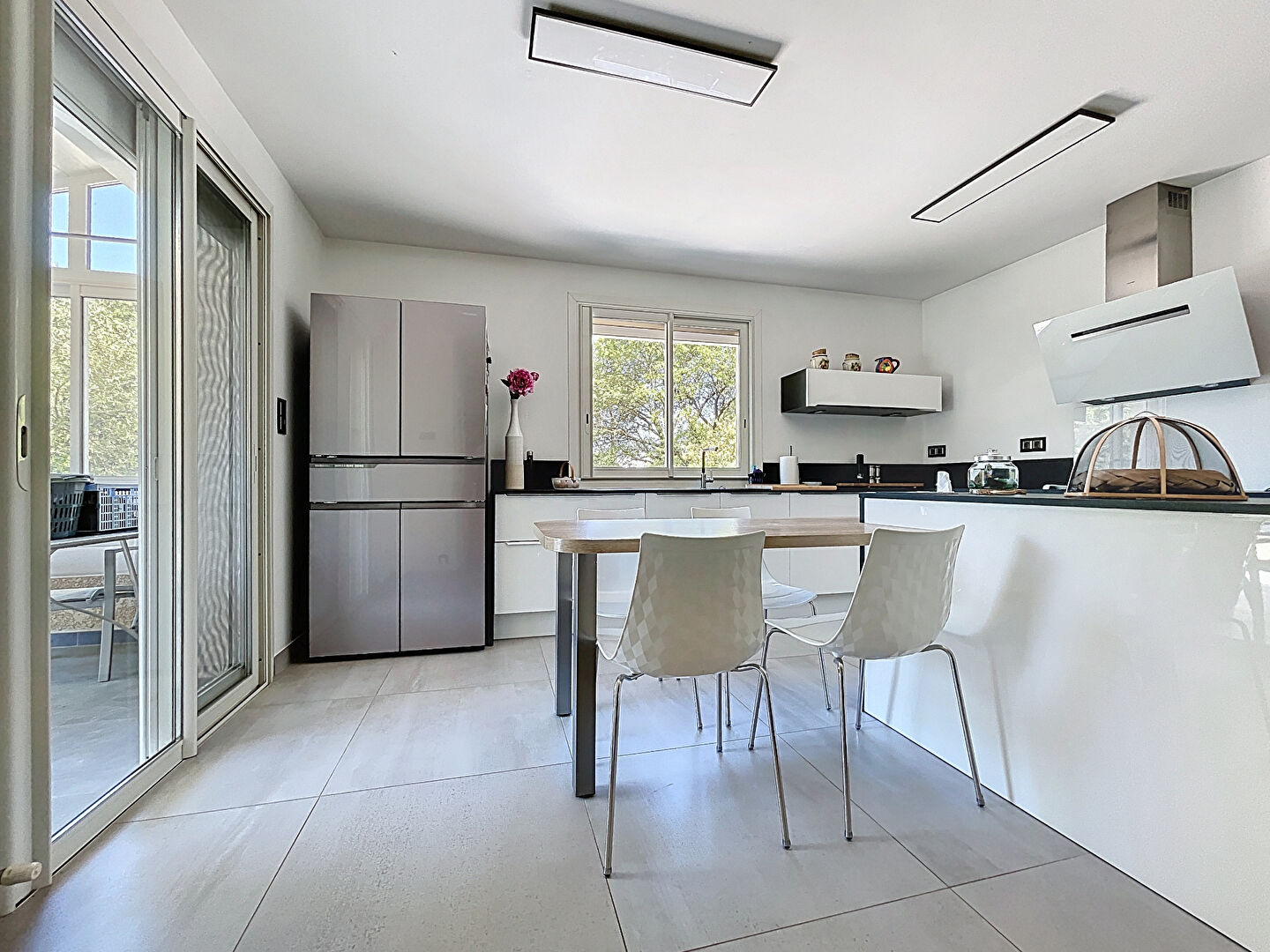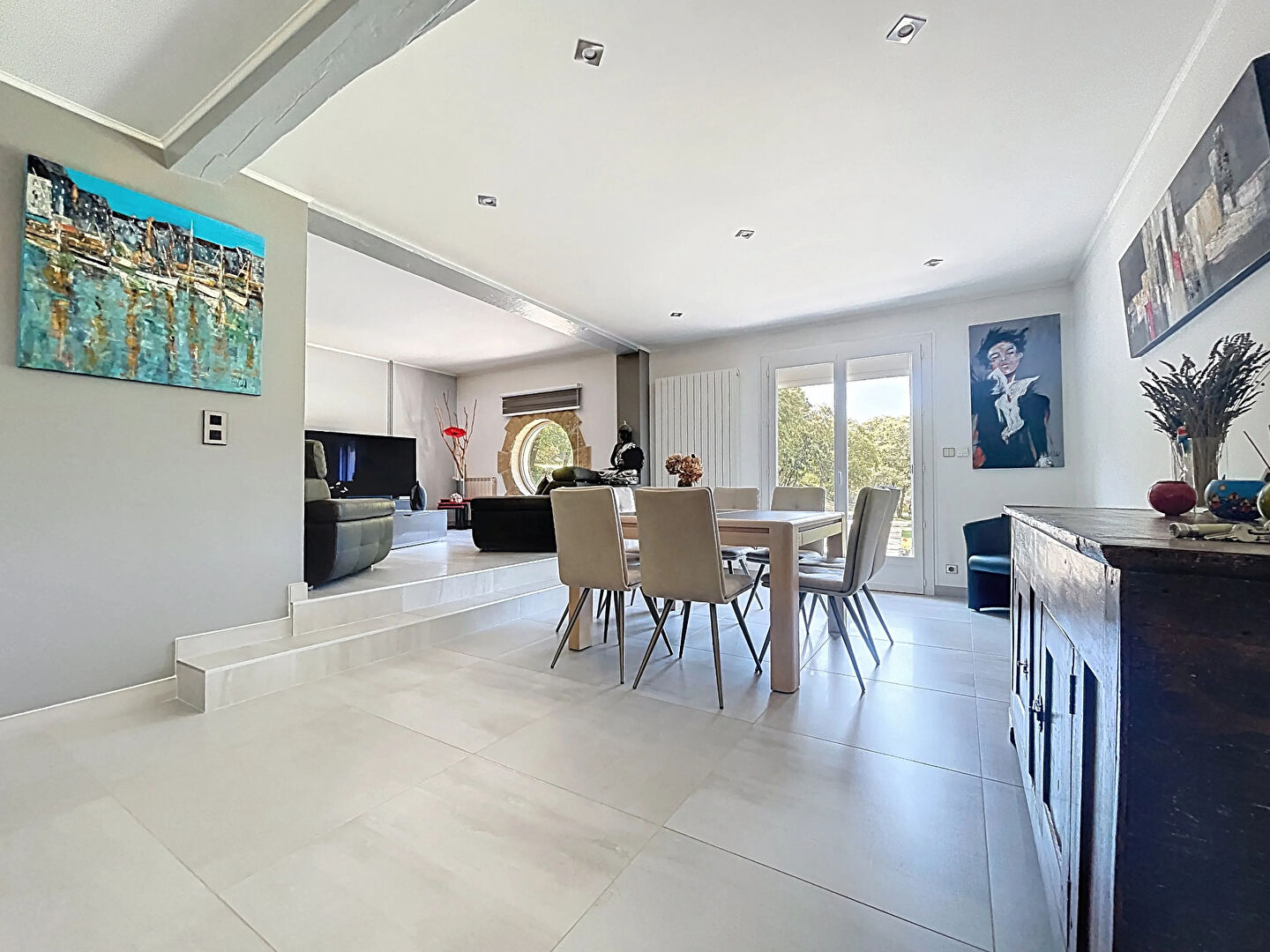 D'une configuration idéale pour une famille ou un projet de résidence secondaire, elle se compose d'un séjour lumineux avec salle à manger, d'une cuisine aménagée, de trois chambres, de deux bureaux, d'une salle d'eau, de deux WC, d'une buanderie, d'un grand garage et d'une cave.