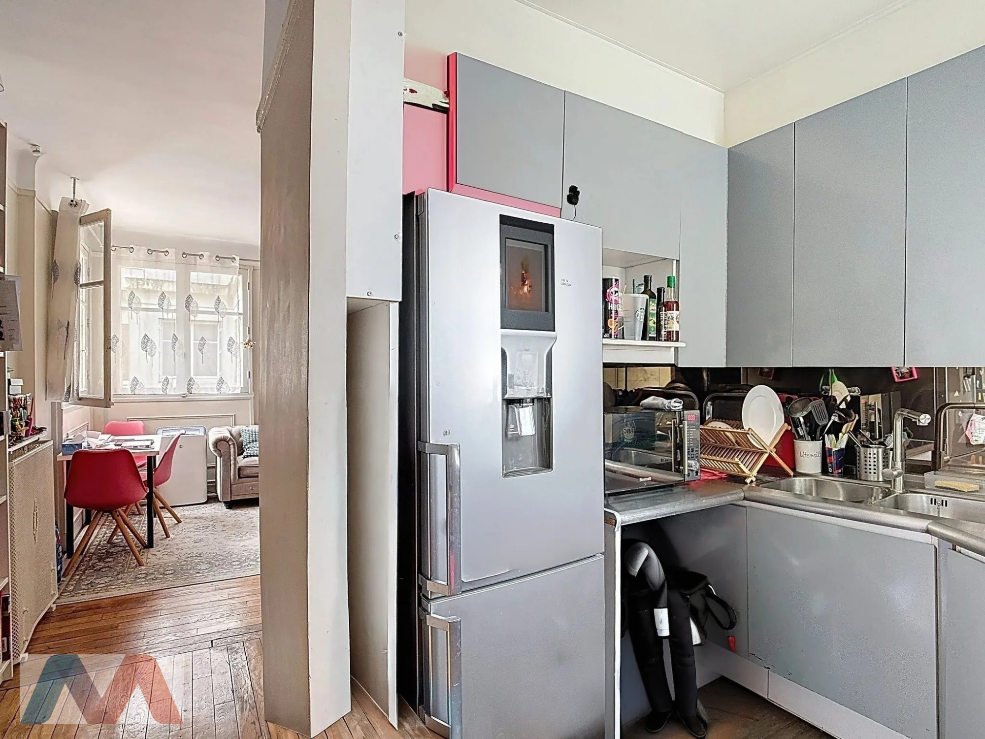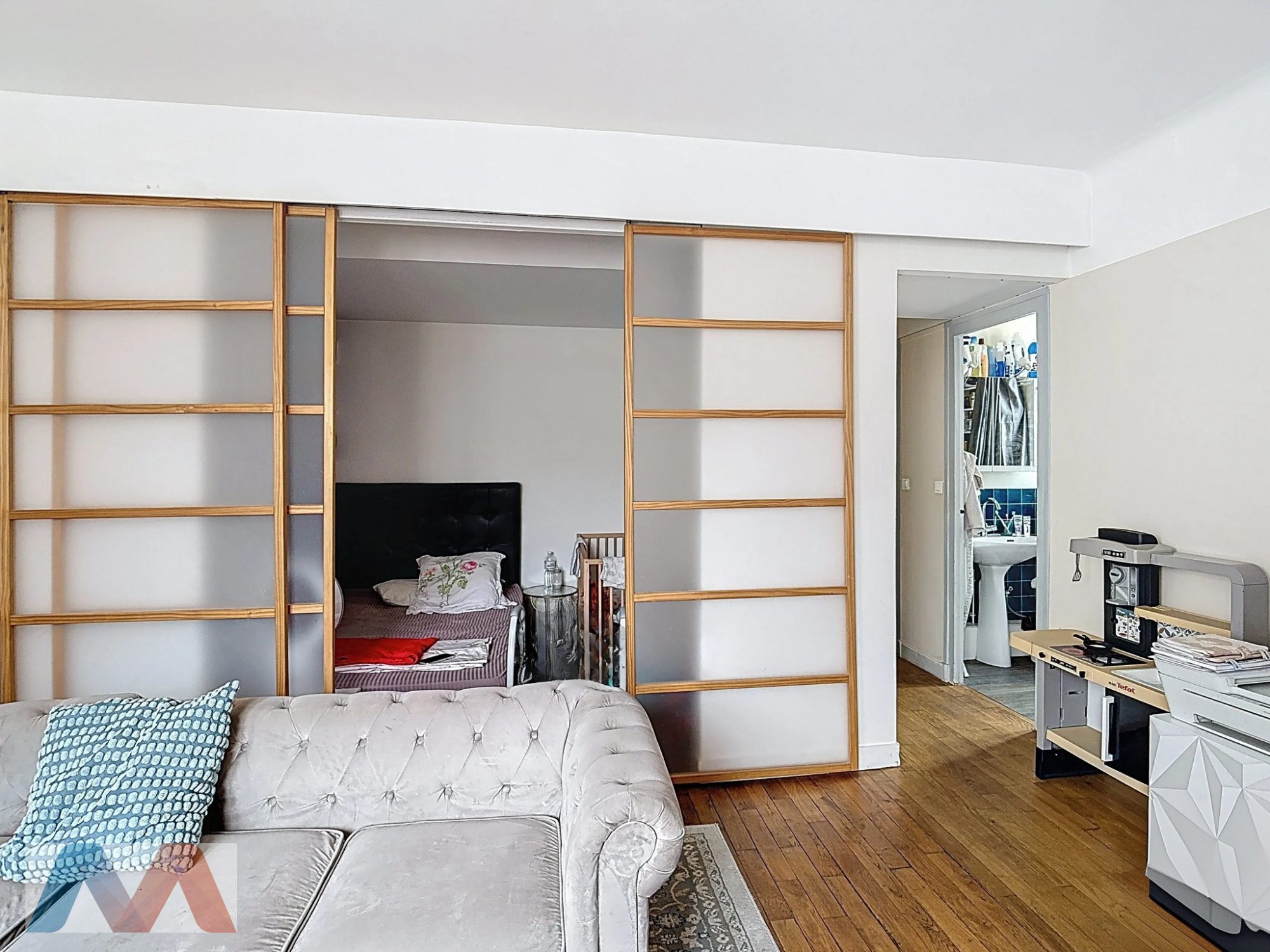 Cuisine séparée, grand séjour de 27 m2 qui a été séparé pour créer une seconde chambre (alcôve). Chambre principale de 14,69 m2.