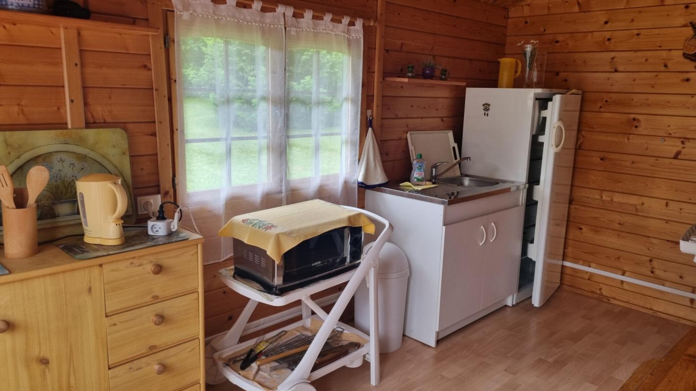 Deux chalets sur place, qui peuvent être utilisés comme hébergement temporaire, atelier, ou pour un projet spécifique.