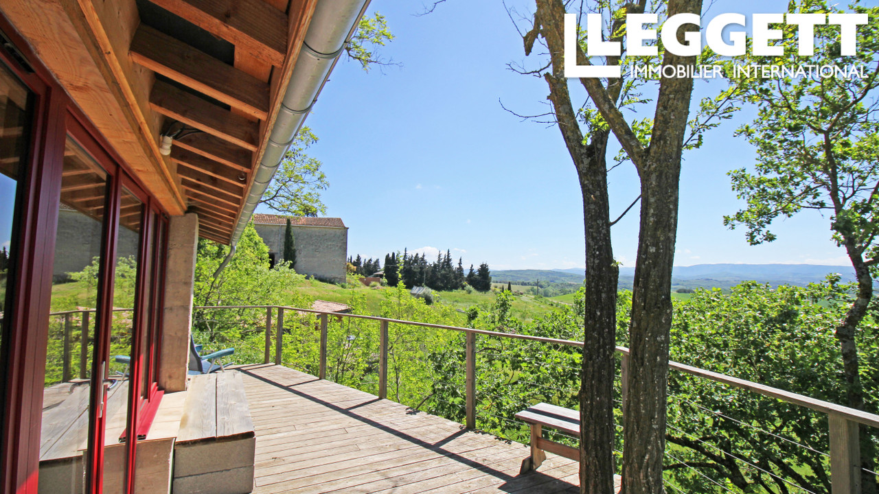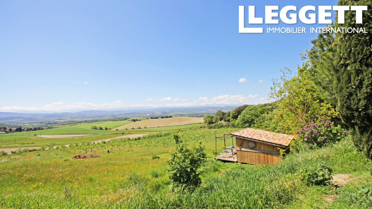 A36760NE11 - Parmi les collines du Malpère avec les vignes, les bois et les Pyrénées dominant l'horizon, vous trouverez ce grand domaine, plein de possibilités. La propriété couvre plus de 83 hectares de champs, et des bois avec un grand potager, et 5 bâtiments pour l'hébergement, les ateliers, ou l'organisation d'événements.