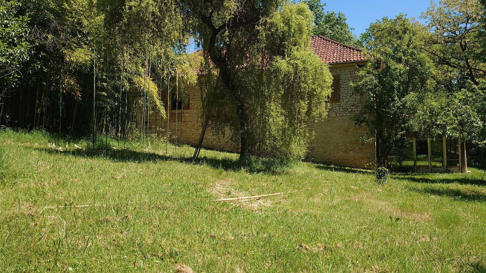 Pascal vous propose (07 88 69 00 07): Maison toute en pierre de pays sur terrain arboré d'arbres fruitiers (pomme, poires, prunes et coings) avec un PUITS. Les pièces à vivre sont au dessus d'une cave et d'un atelier qui se trouvent en rez de jardin.Par un escalier en pierre vous accédez à la partie d'habitation. Belle terrasse sur tout le coté sud-ouest. Sur le même niveau, grande pièce à vivre lumineuse de plus de 40 m2 munie d'une cheminée avec insert. La cuisine est indépendante et toute équipée. DEUX chambres de plus de 15 m2 chacune, dont une avec espace douche. Belle salle de bain avec douche.Wc indépendant. En rez de jardin:grand atelier, cave, chaufferie. Le terrain s'étend sur un peu plus de 2000 m2. Charpente et toiture en état satisfaisant.