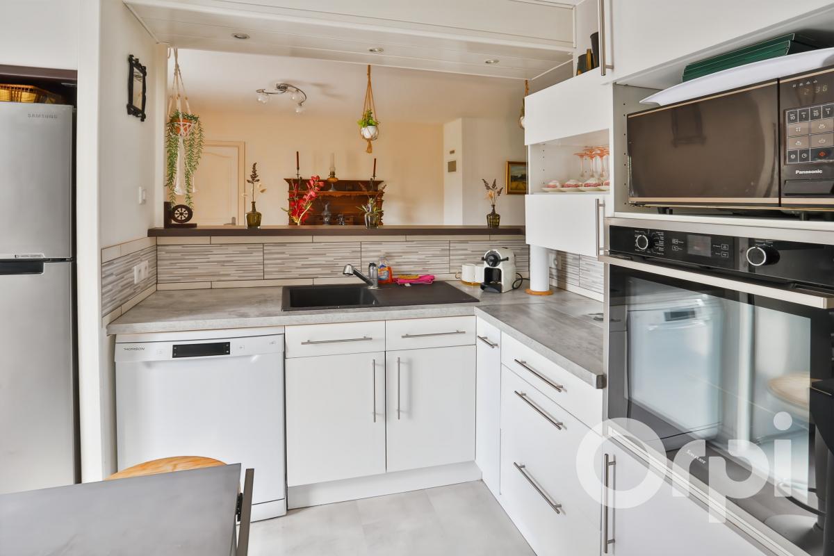 Maison de plain pied offrant: Entrée, séjour double avec cheminée insert, cuisine semi ouverte aménagée et équipée, couloir, wc, salle d'eau, 3 chambres, terrasse avec store banne, buanderie, garage avec 1 chambre au-dessus, le tout sur un jardin de 582m².