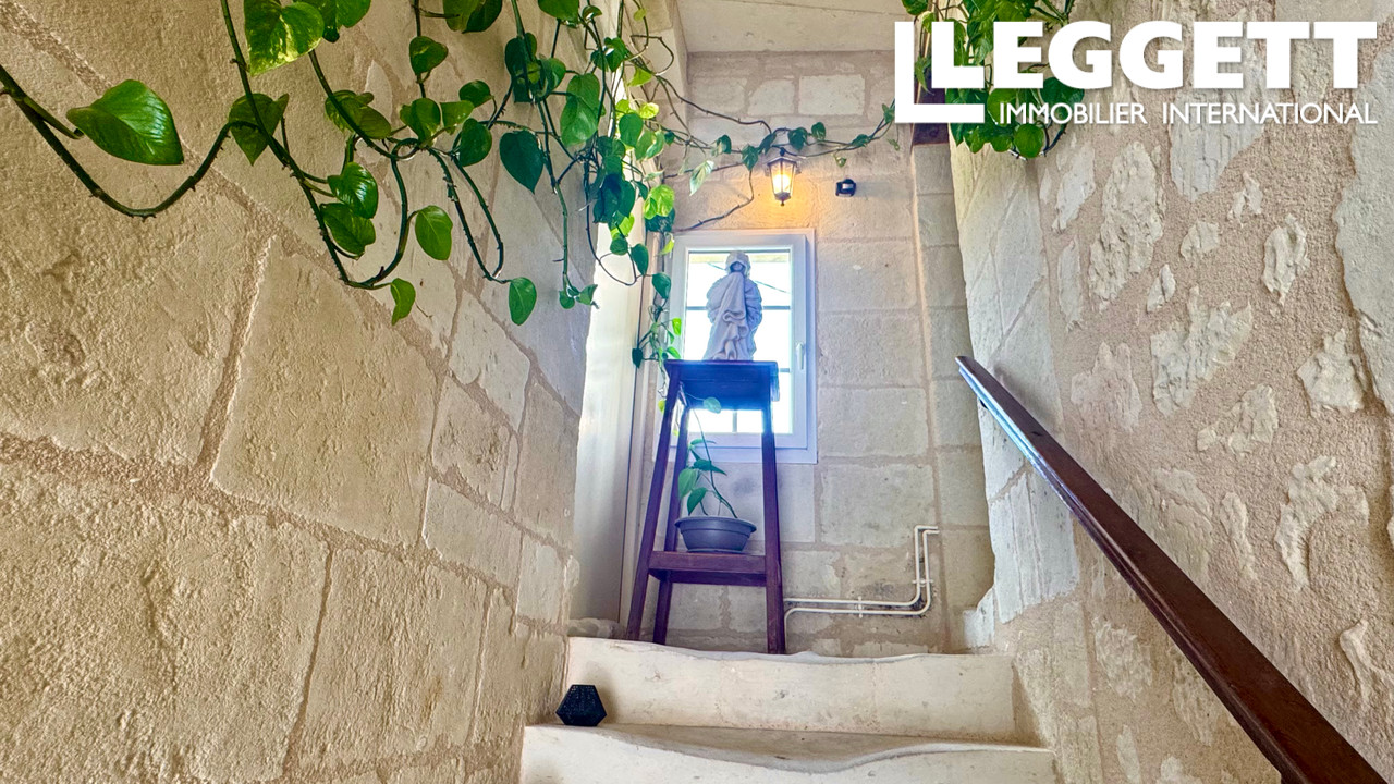 Un magnifique escalier en pierres, des tomettes, des poutres et une immense cave voûtée rappellent le caractère historique de cette propriété.