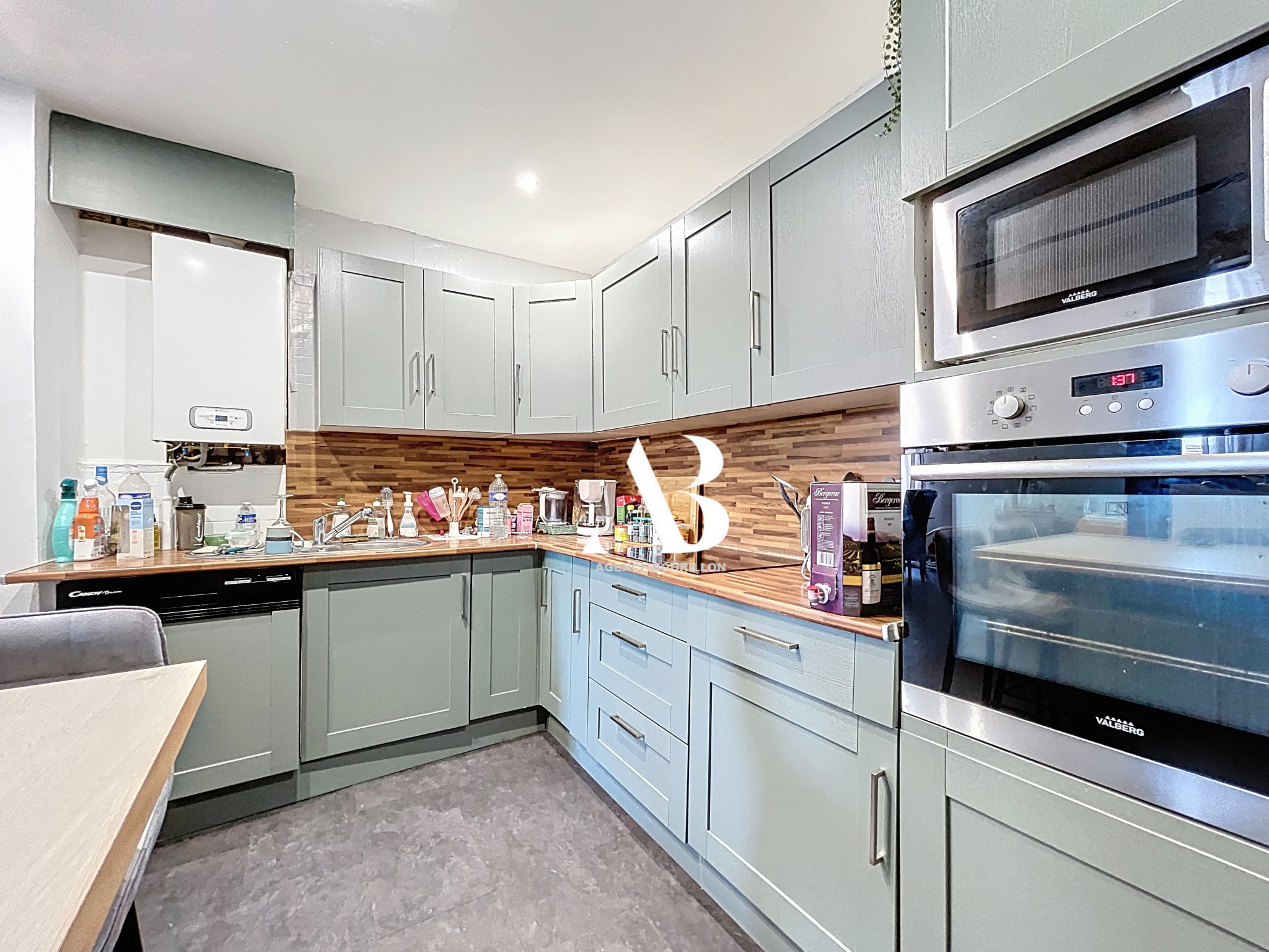 Au rez-de-chaussée : une entrée, une buanderie, un beau séjour lumineux d'environ 40 m2 composé d'une cuisine ouverte aménagée & équipée rénovée récemment, d'un espace salon et salle à manger.