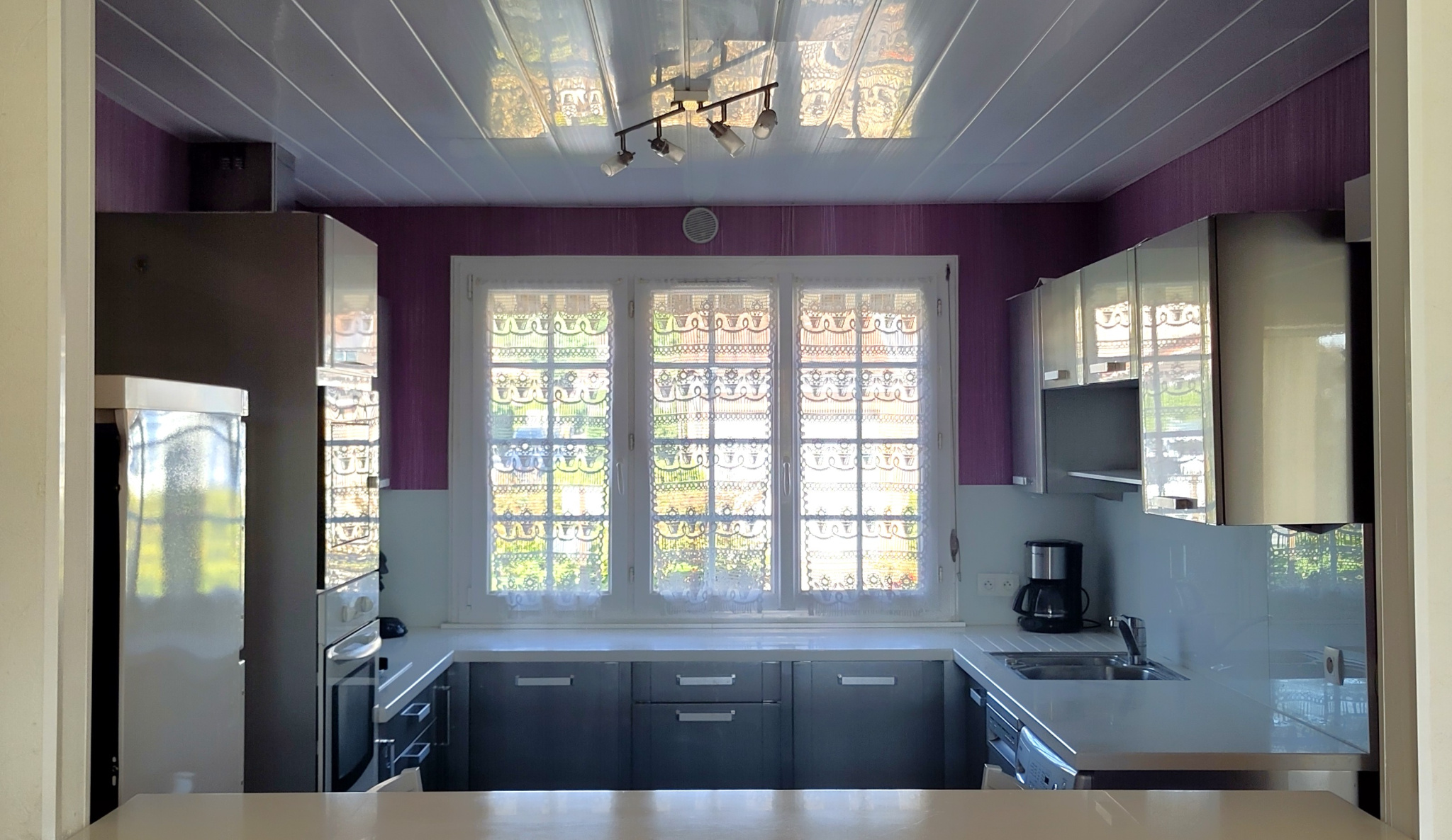 La cuisine semi-ouverte, moderne et fonctionnelle, invite à la convivialité.