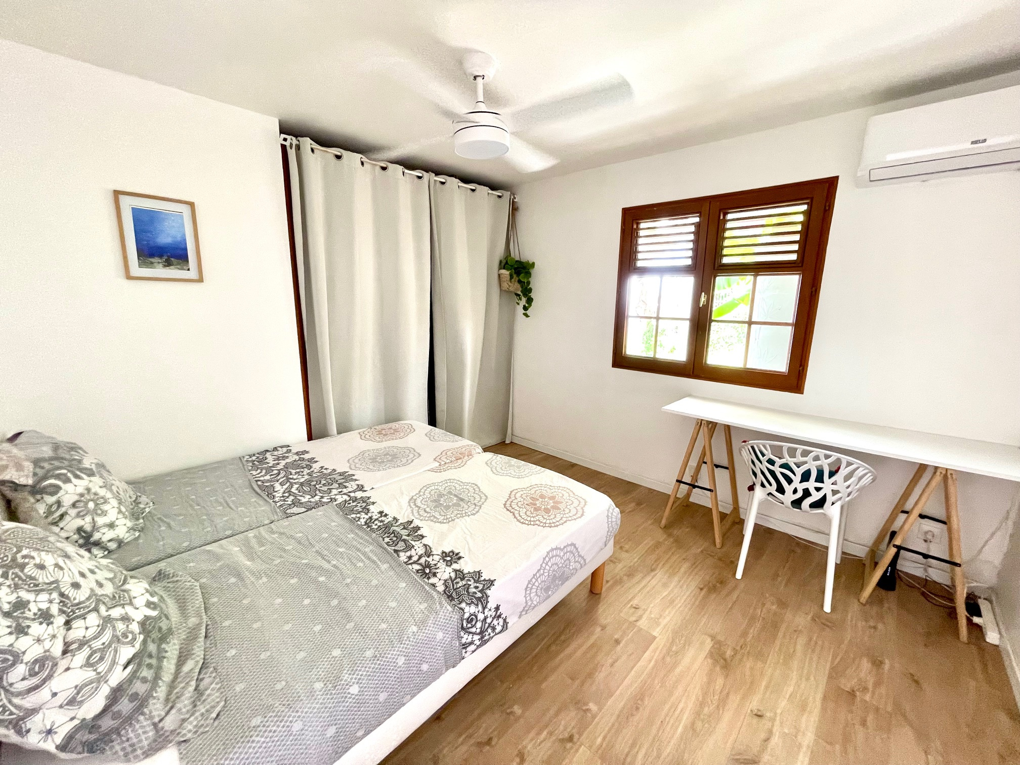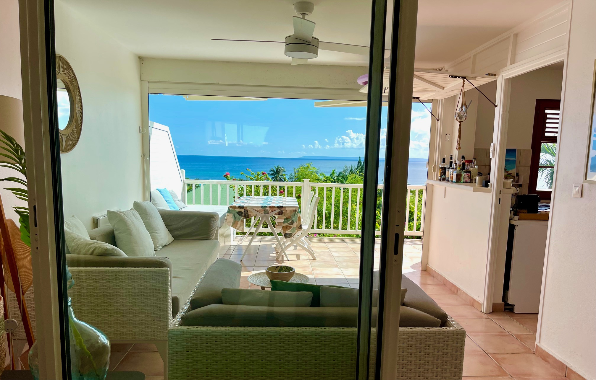 APPARTEMENT T3 MEUBLE AVEC PLEINE VUE MER à 180o, 72m2 avec terrasse, situé en hauteur face à Marie-Galante dans une petite résidence intimiste. Composé d'une double terrasse ventilée avec une large vue mer, une grande cuisine est séparée, un salon, une chambre séparée climatisée avec placard, une seconde chambre ouverte avec basseur d'air avec un coin bureau, une salle d'eau avec WC. L'intérieur a été refait, le Bien est vendu meublé et équipé, il est prêt à être habité, sa situation est idéale pour exercer la location touristique et parfait pour une habitation princiaple, ce type de bien est très recherché. Une place de parking est attitrée, équipé d'une citerne d'eau et raccordée à la fibre internet de qualité. Un jardin à usage privatif. La plage est accessible à pied. Pour plus d'informations contacter Laurence CAILLET par WHATSAPP et SMS au +590 690 002 312 ou par SMS au 0690 35 97 18 et par mail : laurence@immo971.com et/ou cailletlo971@gmail.com en laissant vos coordonnées et l'objet de votre appel.