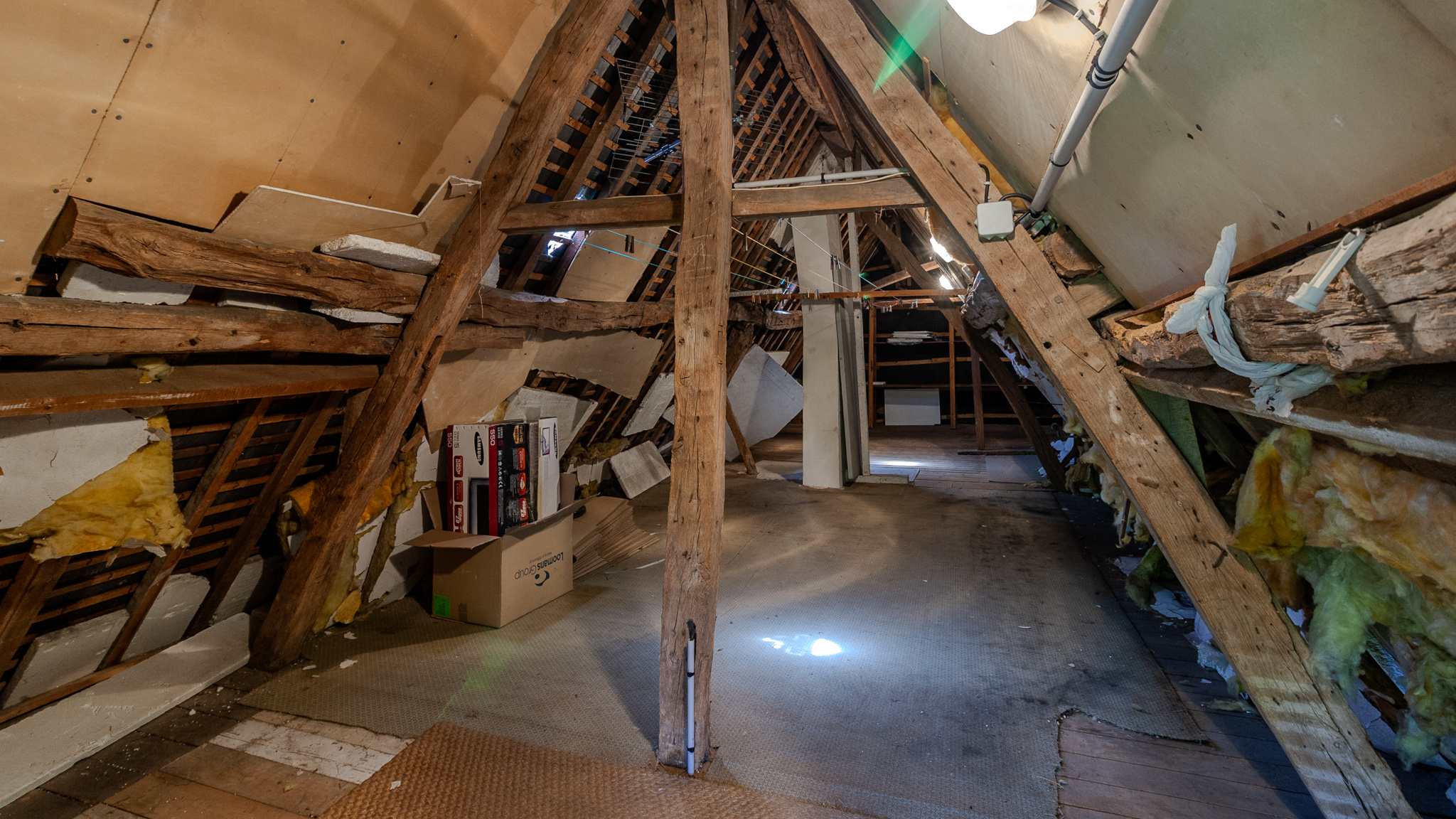 En empruntant l'escalier extérieur, vous aurez accès au grenier très sain et doté d'une belle charpente d'époque.
