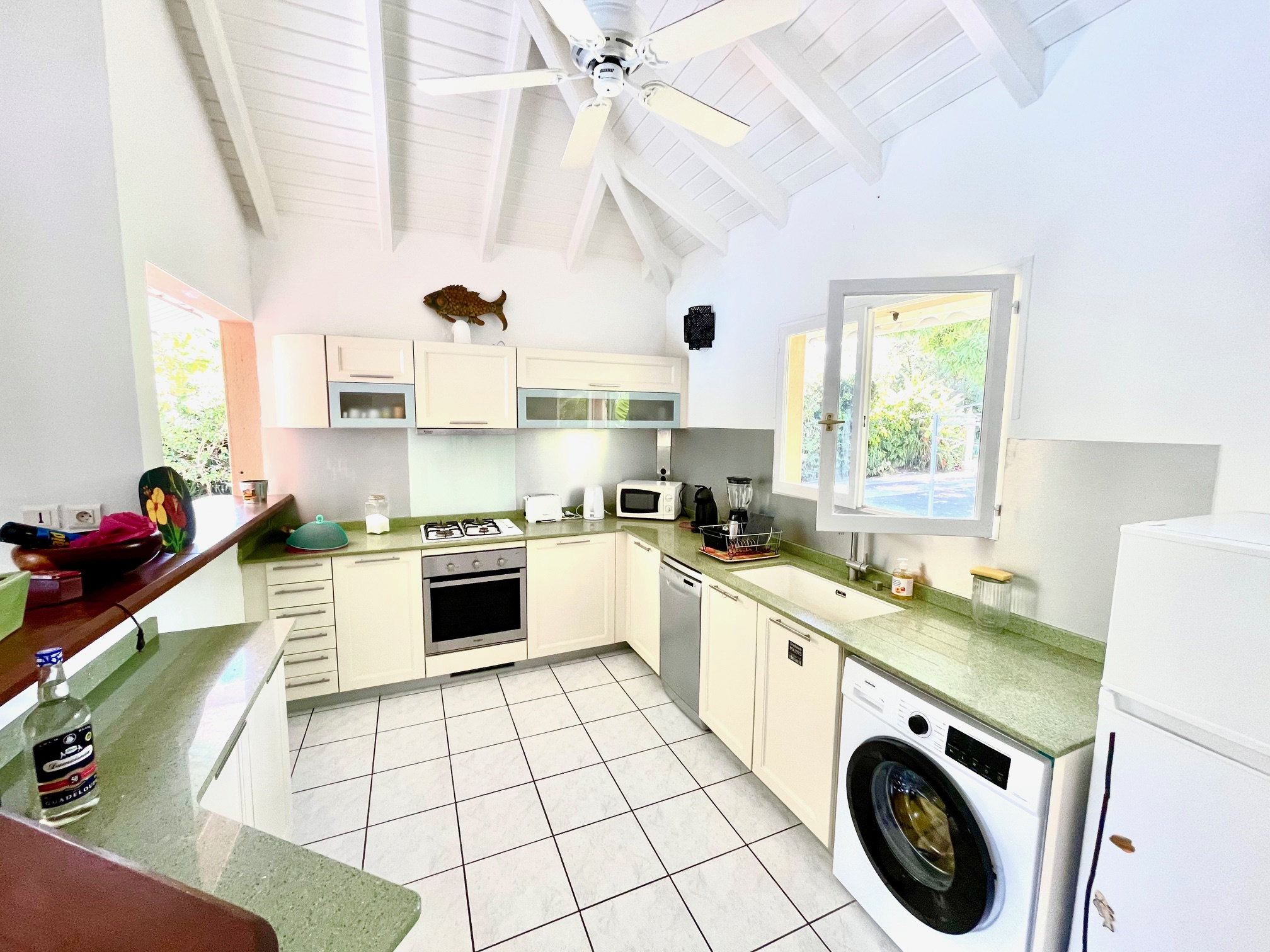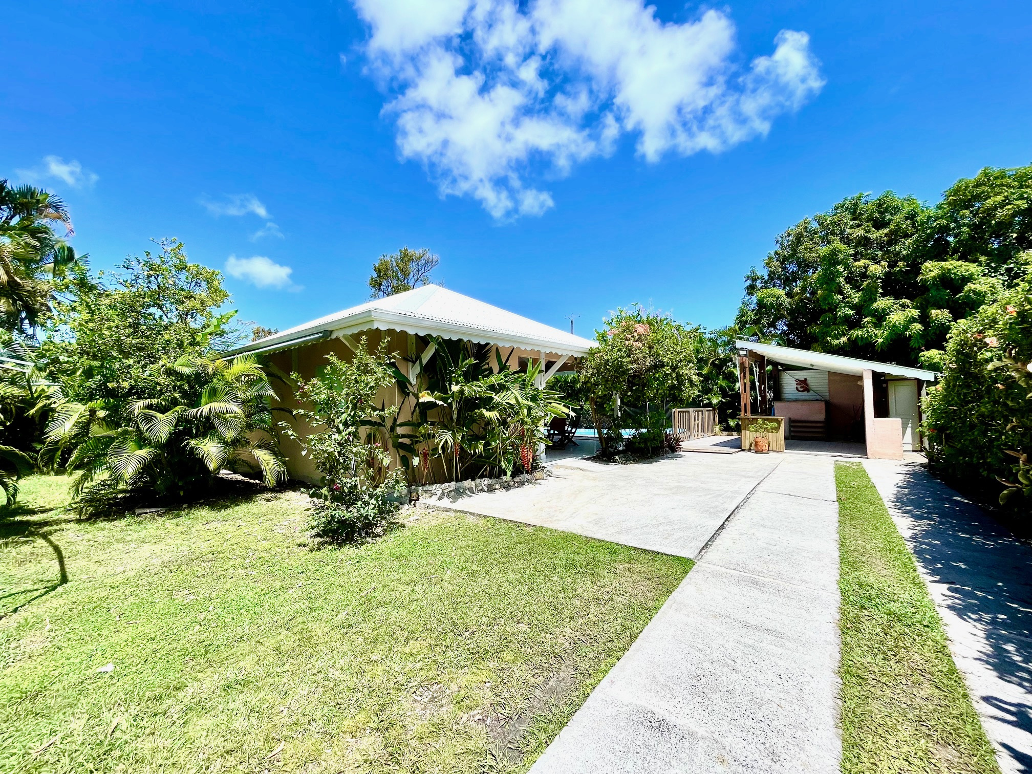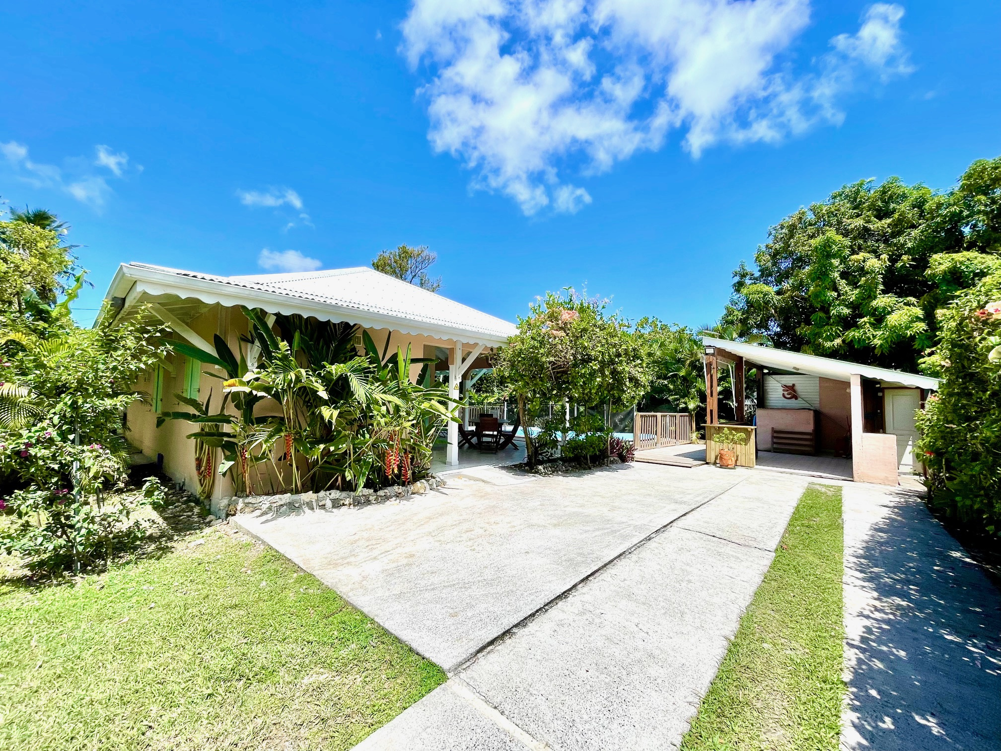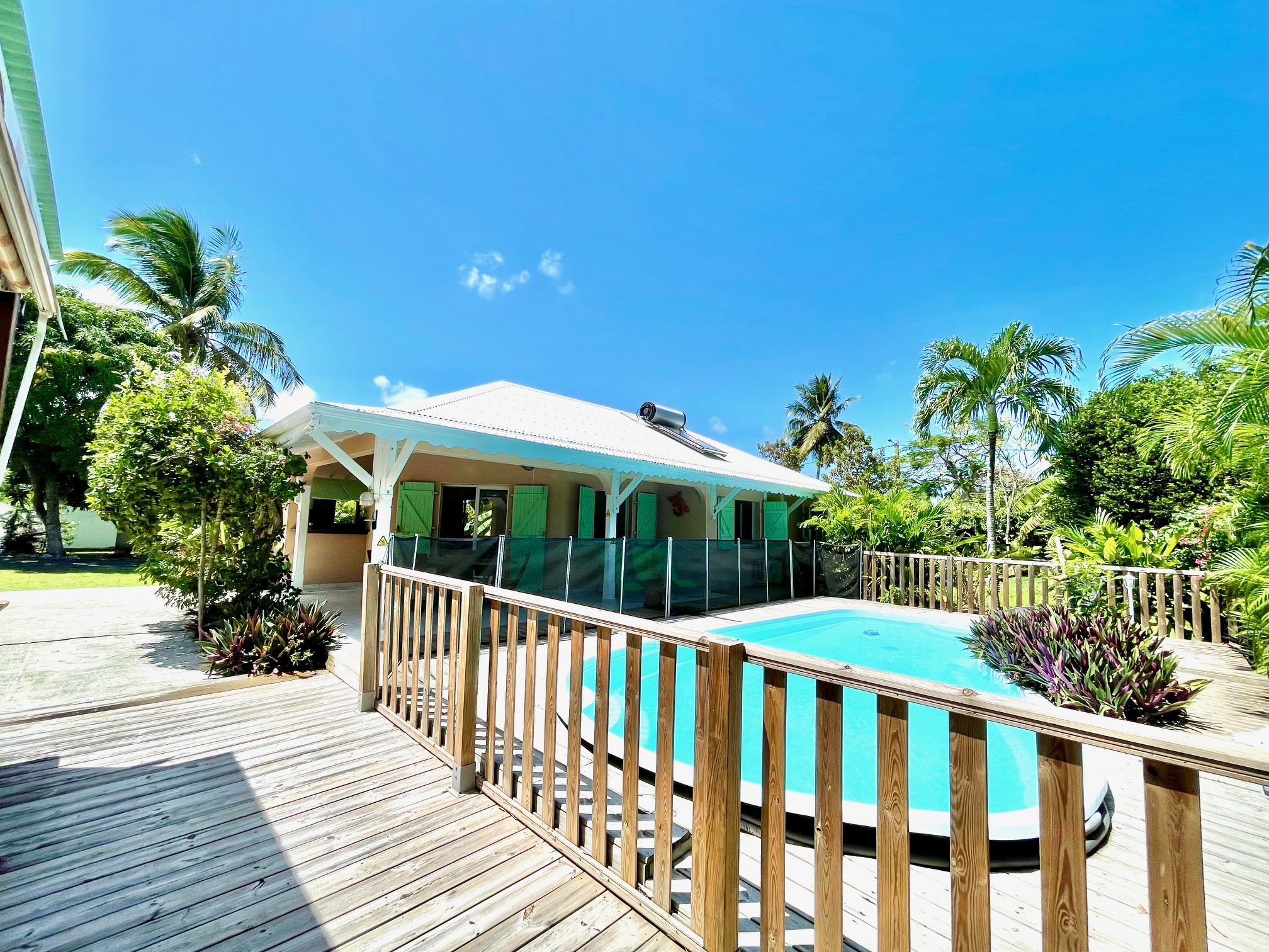 Jolie villa F4 de plain pied de 116 m2 env. sur une parcelle de 1100 m2 env. avec un bungalow F2 de 41 m2 env. situé dans un quartier résidentiel à 6 km du centre ville. La villa est composée d'une grande terrasse, 3 chambres climatisées avec placard, 1 salle de bains/WC, 1 salle d'eau/WC, 1 vaste salon/salle-à-manger et 1 cuisine américaine équipée. Un carbet avec une piscine. Un bungalow à part, indépendant équipé et composé d'une chambre climatisée avec placard, 1 salle d'eau/WC et 1 terrasse avec cuisine. Un cabanon de jardin, 1 citerne, 1 portail télécommandé. Terrain plat, clos, arboré avec plusieurs places de stationnement. Le Bien est loué jusqu'en octobre 2025 avec 1 loyer de 1800EUR/mois. Pour plus d'informations contacter Laurence CAILLET par WHATSAPP et SMS au +590 690 002 312 ou par SMS au 0690 35 97 18 et par mail : laurence@immo971.com et/ou cailletlo971@gmail.com en laissant vos coordonnées et l'objet de votre appel.