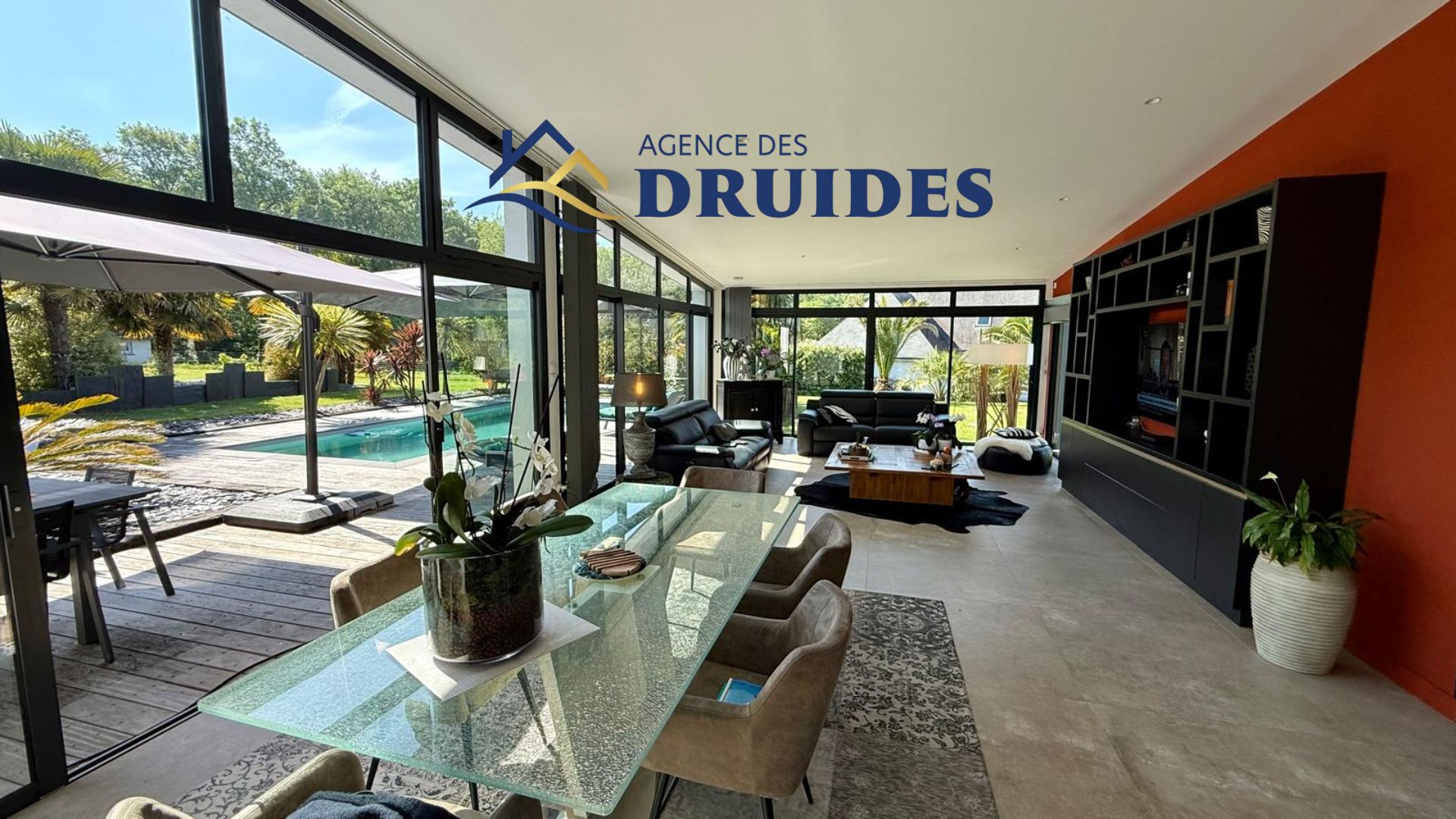 CAMORS, sur Superbe parc de 3400m² avec vue sur la foret, Villa de plain pied de 150m² avec piscine chauffée. Elle offre un magnifique séjour de 56m² baignée de lumière, une agréable cuisine aménagée et équipée, une suite parentale avec dressing, une deuxième suite et une chambre. Un vaste terrasse bois avec piscine chauffée. Un véritable havre de paix pour amoureux de la nature!