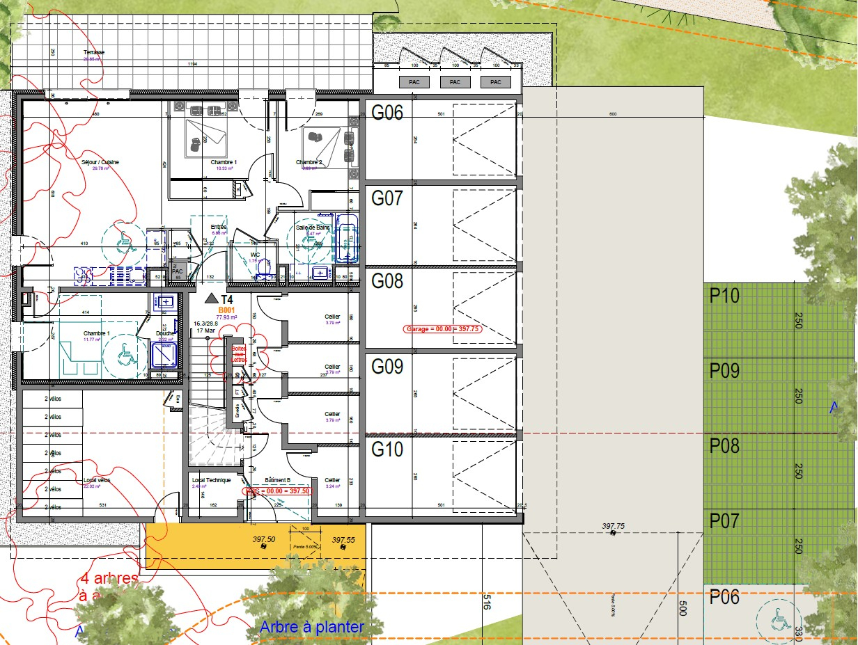 Appartement de type T4 en rez de jardin , d'une surface de 79.35m², orienté SUD/OUEST, composé d'une entrée avec placard, cuisine ouverte sur séjour/salon (29.14m²), 1 chambre avec salle d'eau, 2 chambres avec placard, wc indépendant, terrasse 30m² , cave/cellier, parking et garage (porte de garage motorisée). Chauffage individuel gaz au sol. Volets électriques....