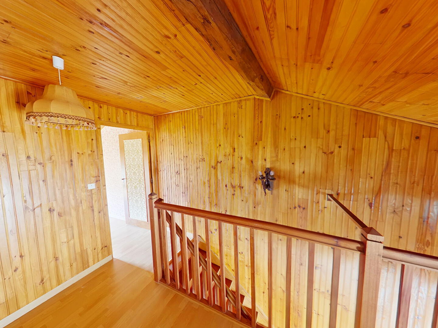 La partie principale comprend un grand salon séjour avec lumière traversante et cheminée ouverte, cuisine aménagée, sde, wc, trois chambres (dont deux en RDC) et un grenier aménageable de 45 m².