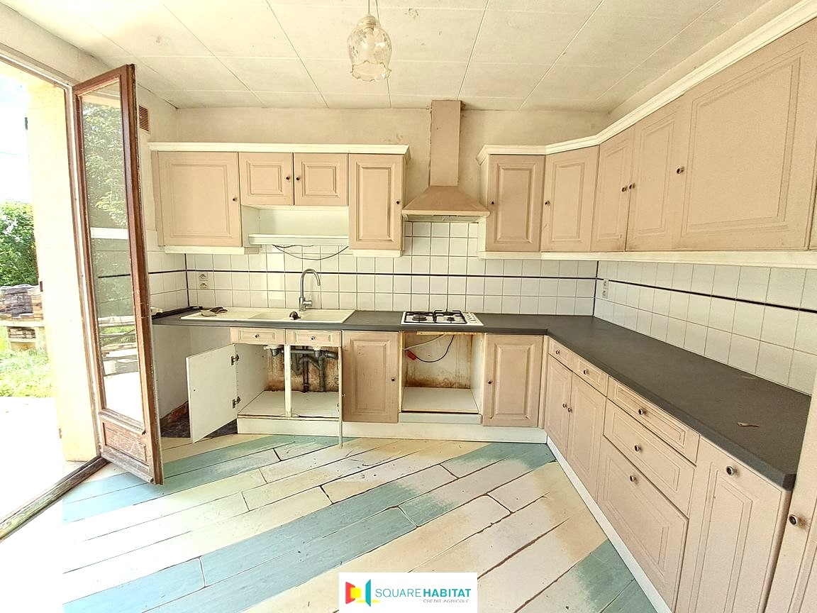 Pavillon nécessitant des travaux, composée de 4 chambres dont 3 au rez-de-chaussée, salon-salle à manger avec cheminée insert, cuisine aménagée, salle de bains et WC.