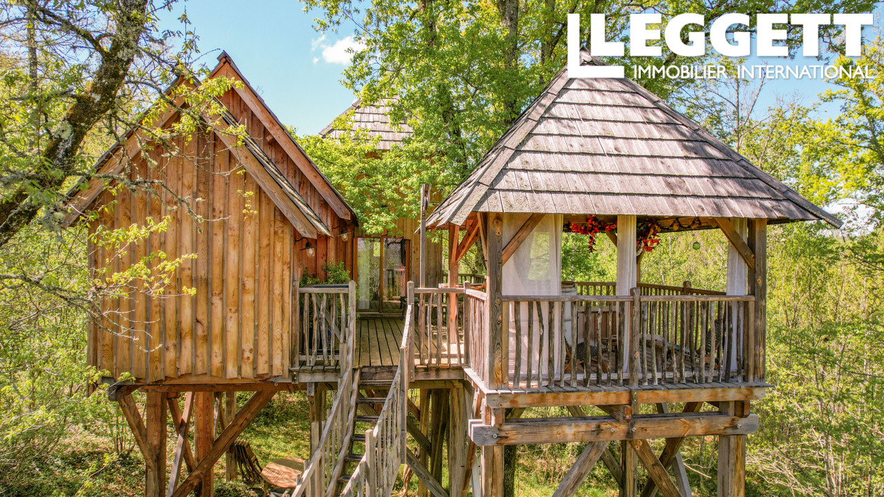 Logements insolites de construction qualitative et récente, cet ensemble de deux cabanes dans les arbres et deux maisons enterrées (ecolodges) propose un fort potentiel de revenu au sein d'un cadre au cachet sans pareil, dans une nature préservée.