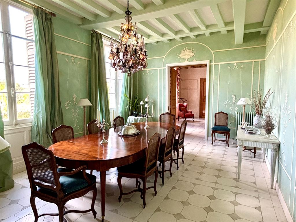 Le château est composé d'une grande entrée/salon desservant une salle à manger élégamment décorée, un grand salon avec cheminée , une cuisine équipée séparée avec une buanderie, un vestiaire et un wc.