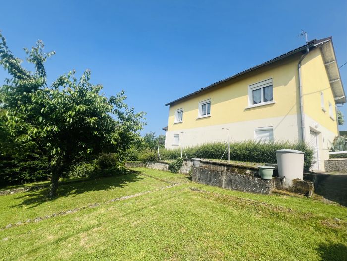 Située sur les hauteurs de la ville, cette agréable maison de plain pied vous offre une belle pièce de vie lumineuse avec insert à bois, une cuisine séparée, trois chambres côté jardin, une salle d'eau entièrement refaite et un wc séparé.