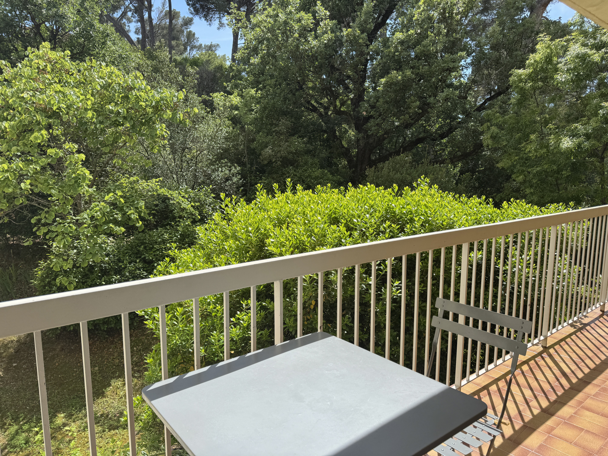 TOULON/PETIT BOIS - South facing - 2-bedroom apartment located on the 1st floor of a closed and secure 3-story condominium - Entrance - Double living room and/or bedroom with sliding doors opening onto a large balcony - Fully equipped kitchen - Bedroom - Shower room - WC - Dressing room - Collective parking - Greenery - Wooded