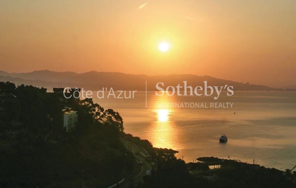 Édifiée sur un terrain en restanques de 1 055 m² paysagé de végétation méditerranéenne, la propriété offre une vue imprenable sur la baie de Cannes, les îles de Lérins et le massif de l’Estérel.