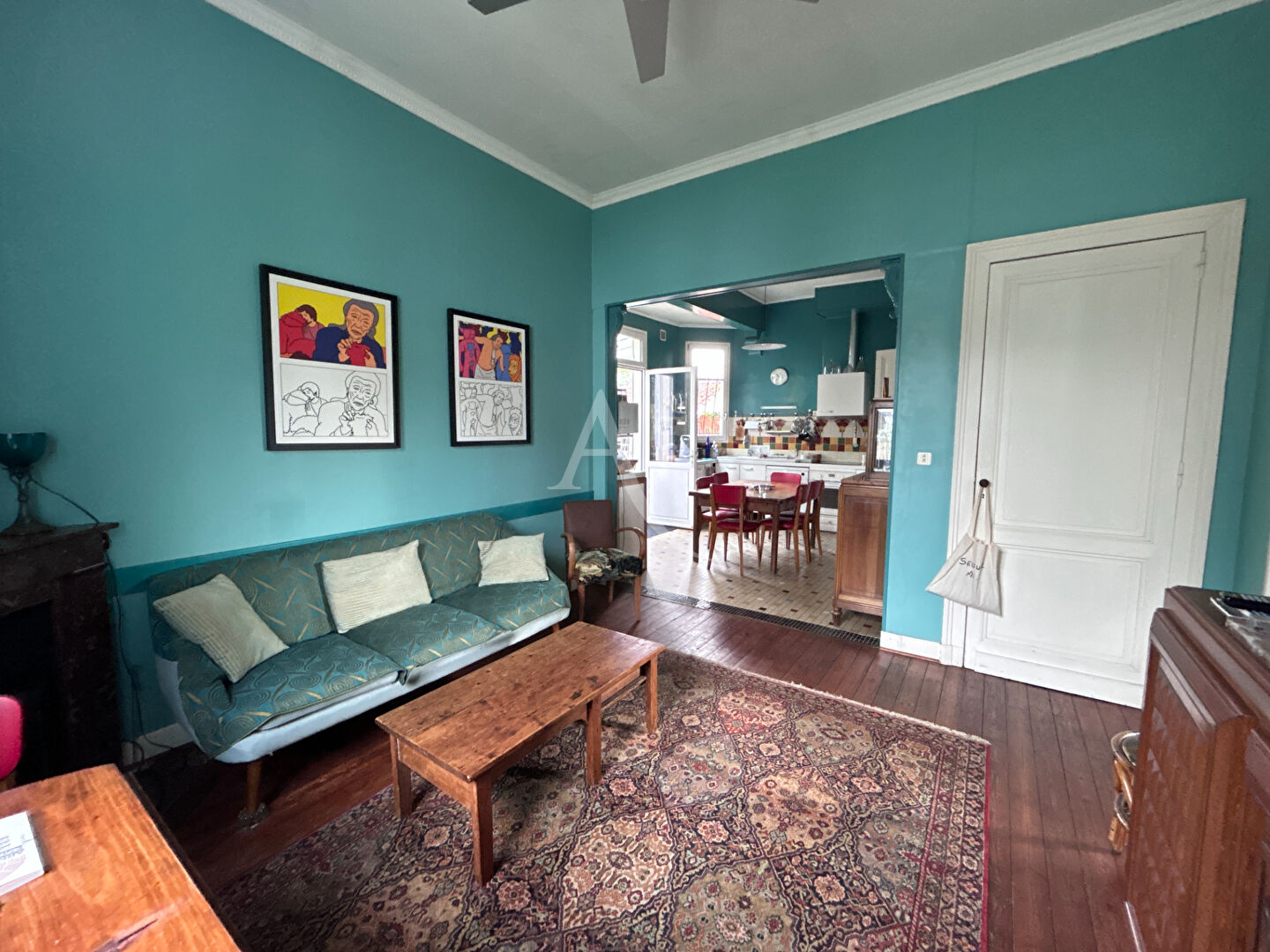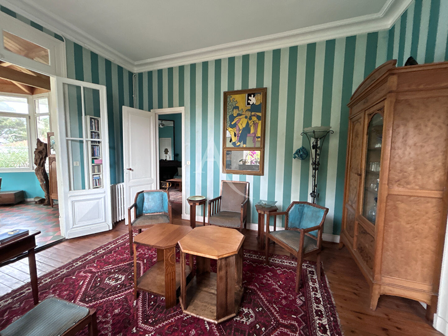 Cette maison familiale dispose d'un vaste espace de vie cumulant le charme de l'ancien avec son parquet massif et ses moulures aux plafonds.