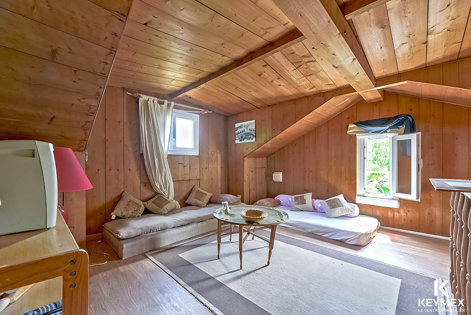 elle se compose d un salon , séjour , coin lecture , une cuisine , une chambre de plain-pied avec salle d'eau à l étage deux chambres un bureau , une salle de bain et