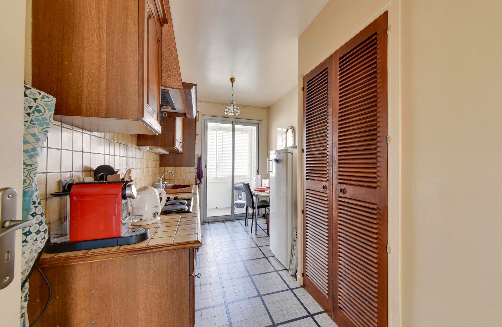 L'appartement dispose de deux chambres, dont l'une climatisée avec un accès direct au balcon, toutes deux dotées d'un parquet en chêne qui confère chaleur et caractère aux espaces nuit. La cuisine est indépendante et bénéficie d'une loggia, une salle de bains et un WC séparé complètent ce bien vendu avec une cave.