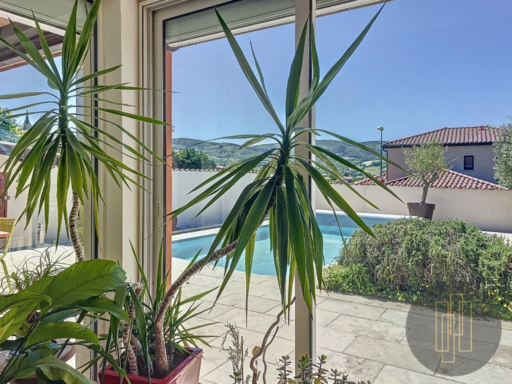 En exclusivité, située sur les hauteurs de la commune de Sourcieux-les-Mines et à proximité de toutes les commodités du centre-ville (commerces, écoles, complexe sportif...) : Maison de 160m² implantée sur une parcelle de 1213m² avec piscine et vue sur les Monts du Lyonnais.