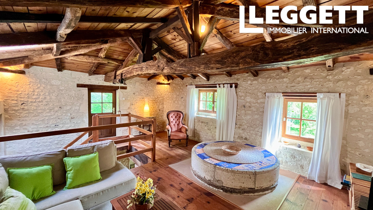 A36954ANB17 - A seulement 10 minutes de la ville thermale de Jonzac, se trouve cette fabuleuse propriété de 5 chambres. Située sur un magnifique terrain privé de plus de 1,5 h elle est bordée par une rivière et possède son propre lac.