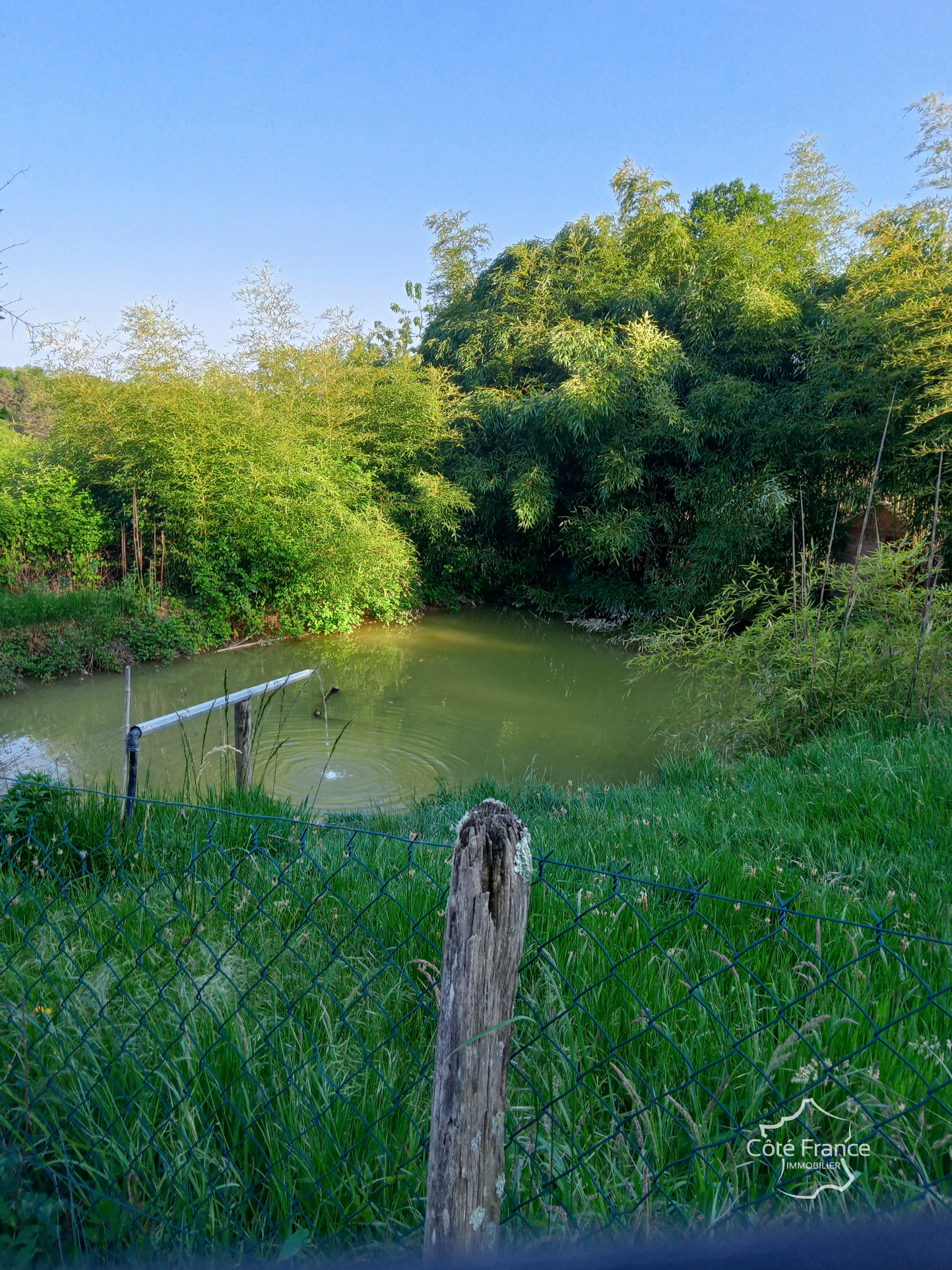 Le terrain est riche en eau, avec des sources, des petits étangs qui servent de trop-plein et même un ruisseau qui longe un côté du terrain. C'est vraiment magnifique. La vue sur les collines du Cantal est phénoménale. Le corps de ferme est situé au bout d'une petite route sans issue, il y a peu de maisons dans les environs immédiats, c'est donc très calme.