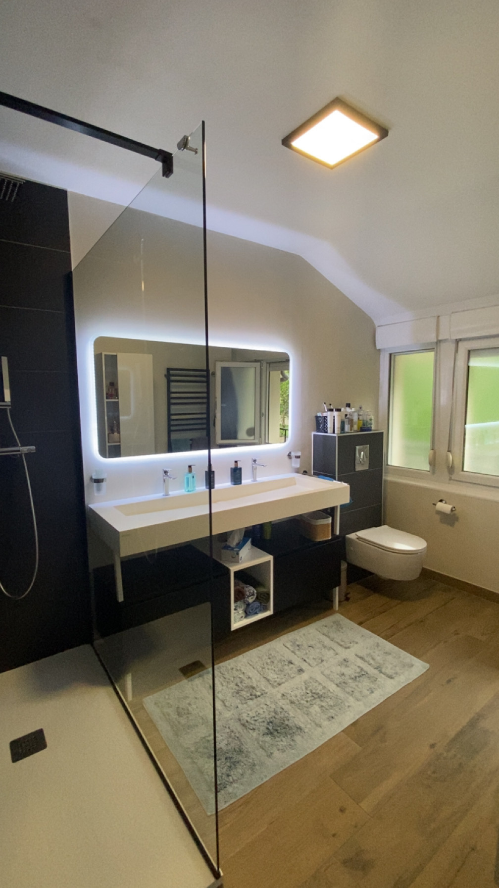 Ensuite à l'étage, on retrouve deux grandes chambres, une pièce pouvant servir de bureau ou de petite chambre, une magnifique salle d'eau et un WC.