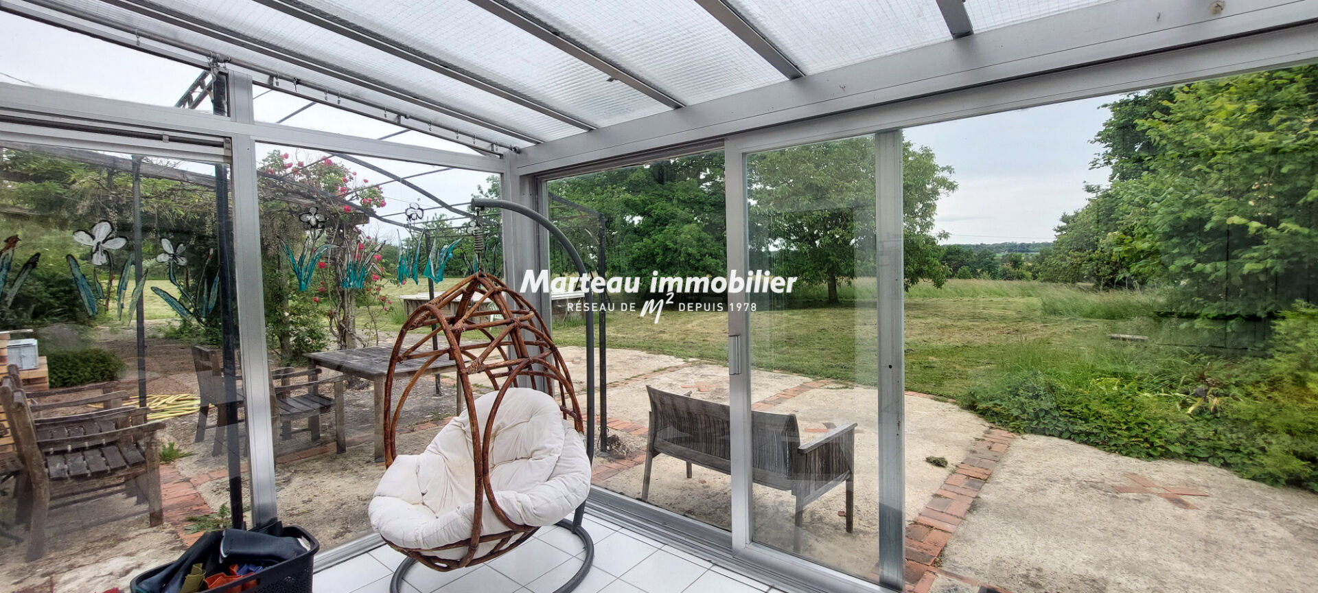 Vous serez accueilli par une grande véranda lumineuse donnant accès à un vaste salon-séjour avec cheminée, ainsi qu'à un second espace de vie d'environ 40 m². La cuisine, entièrement aménagée et équipée, s'accompagne d'une arrière-cuisine. Une salle de bains avec WC.