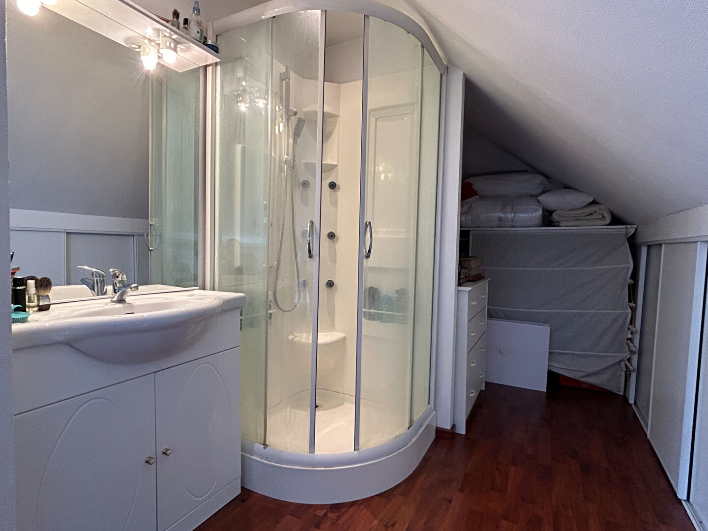 Le comble est aménagée d'une grande chambre avec sa salle d'eau.