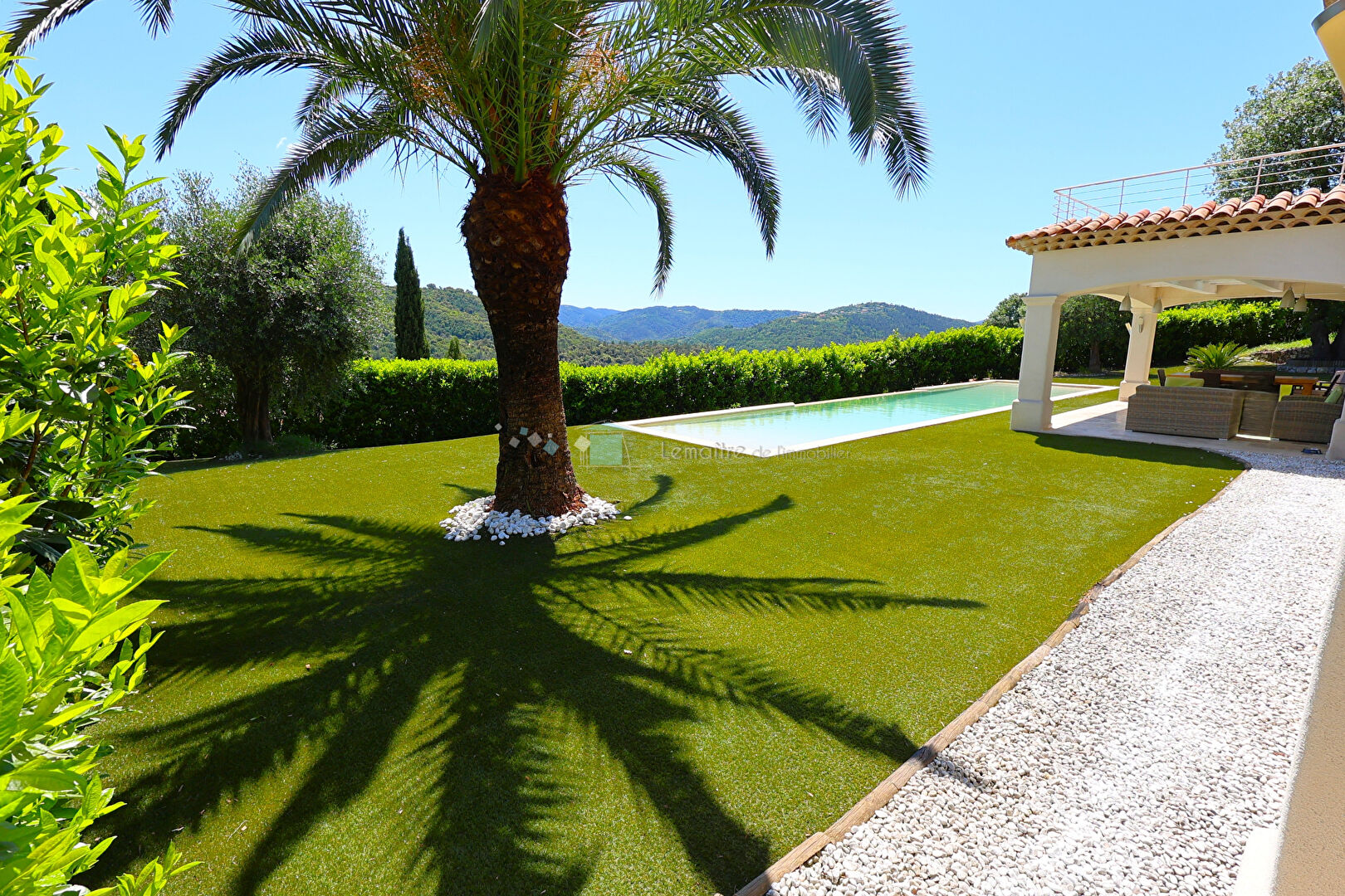Belle vue dégagée sur les collines du Tanneron pour cette très jolie villa contemporaine d'une superficie de 210 m² habitables, en majorité de plain pied, édifiée sur un jardin paysager de 2 500 m².