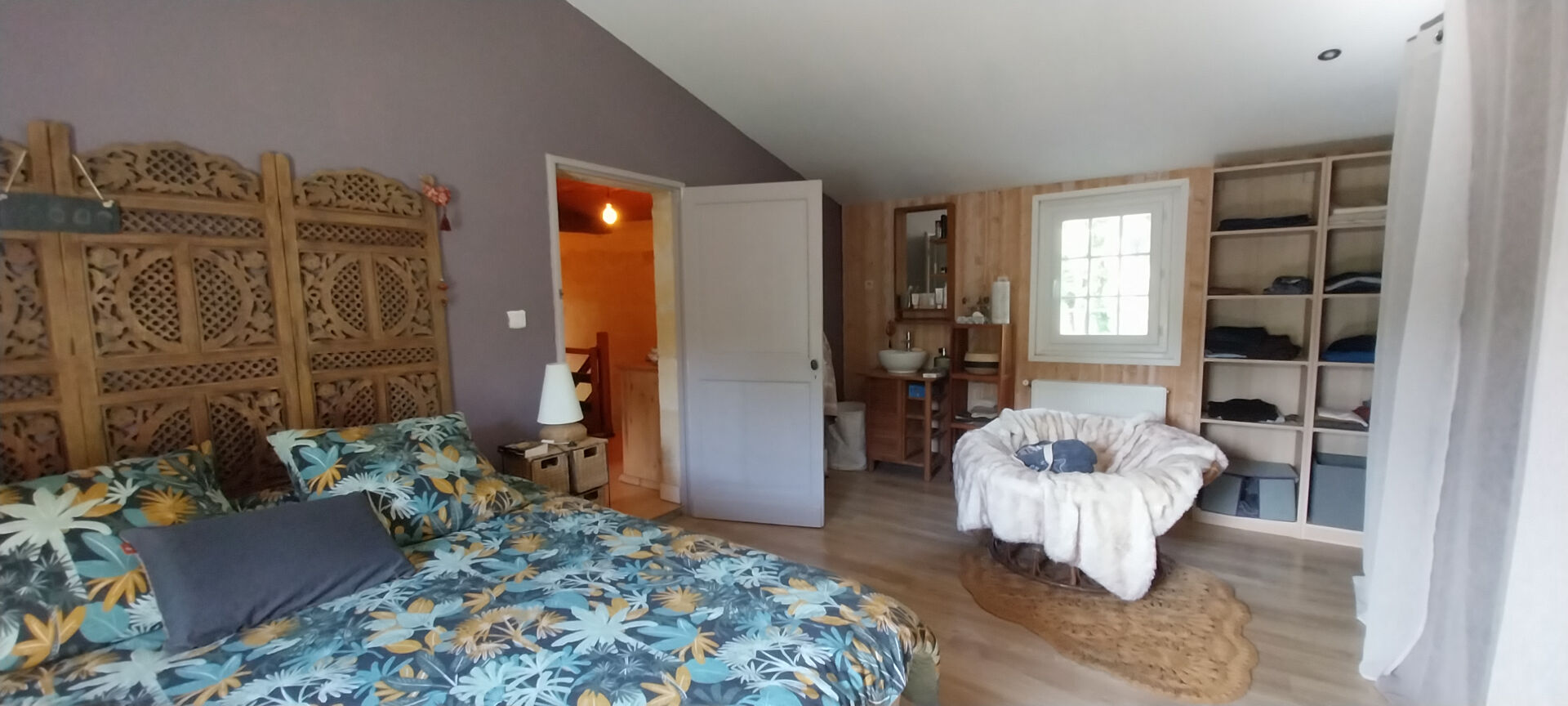 Architecture type girondine, excellent état, elle propose entrée avec carreaux de gironde, cheminée en pierre, grande cuisine équipée donnant sur terrasse couverte, 5 chambres dont une suite parentale, grande buanderie, dépenandance avec panneaux solaires, dépendance avec ancien four à pein, grand terrain arboré de plus de 5000m², le tout au calme.