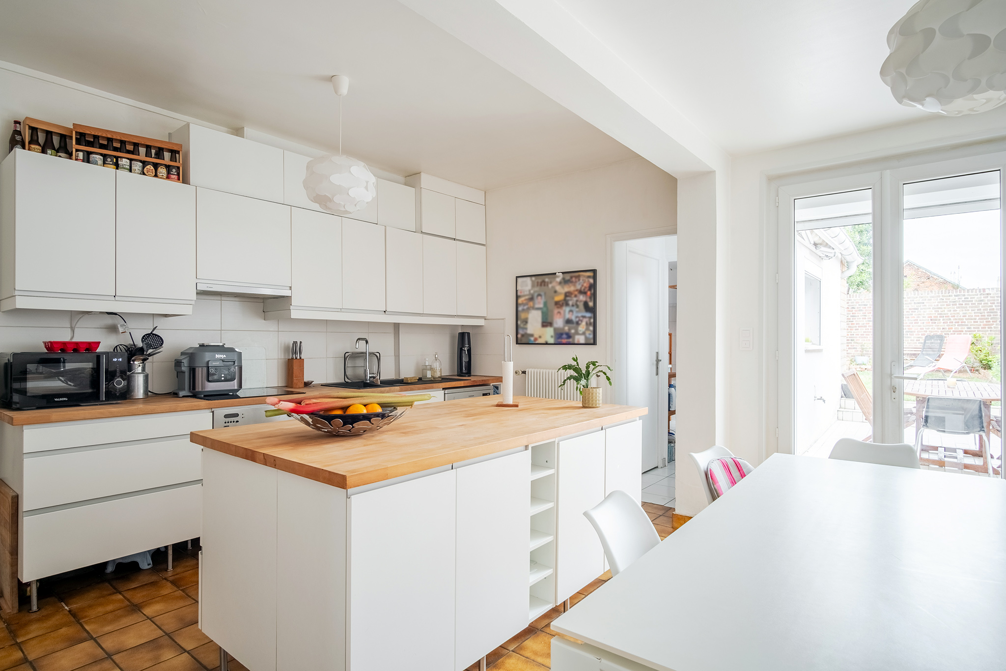 - entrée, vaste séjour avec cfb (insert) , grande cuisine aménagée donnant sur le jardin, sdb, wc ;