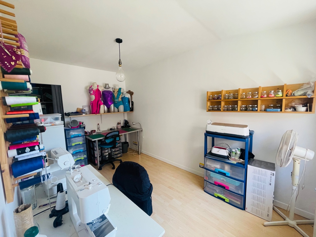 En RDC , une spacieuse pièce de vie avec cuisine entièrement équipée, une chambre de 14 m², une salle d’eau, un bureau, et une buanderie. À l’étage, 2 chambres confortables et un dressing. Pour compléter une cave pour le stockage et un garage de 22m².