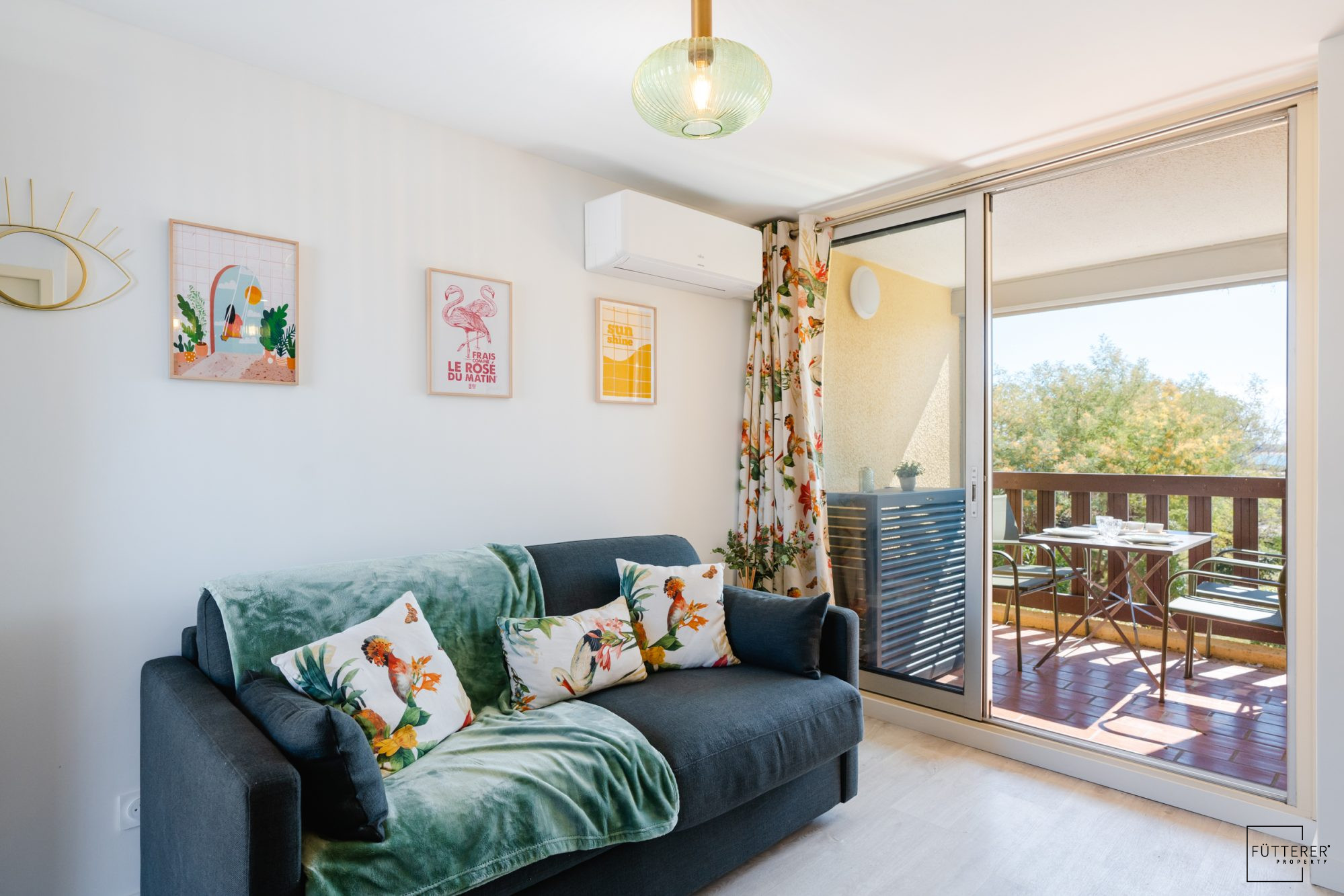 Fütterer Property vous présente à Gruissan - EN EXCLUSIVITÉ : Dans le secteur du Grazel, découvrez cet appartement rénové de type 2 pièces d'une superficie de 22,35 m² habitables, agrémenté d'une loggia de 4,69 m² orientée à l'Est, situé au 1er étage. Profitez d'une magnifique vue dégagée sur le Grazel. L'appartement se compose d'un séjour lumineux avec une cuisine ouverte entièrement aménagée et équipée, d'une chambre dotée d'un placard, ainsi que d'une salle de douche avec wc.