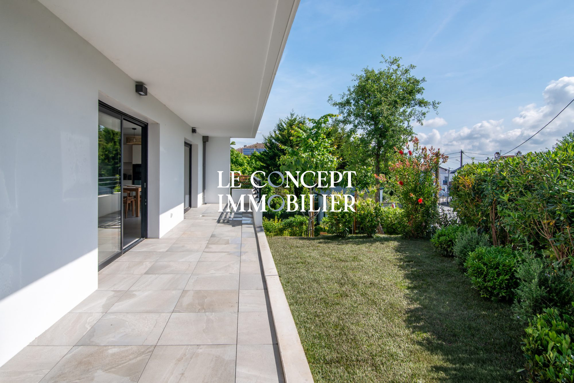 Une vaste terrasse couverte de 37 m² prolonge agréablement les pièces à vivre et s'ouvre sur un jardin privatif de 125 m², soigneusement arboré et fleuri. Véritable havre de paix, cet espace invite à la détente et aux repas en plein air tout au long de l'année.
