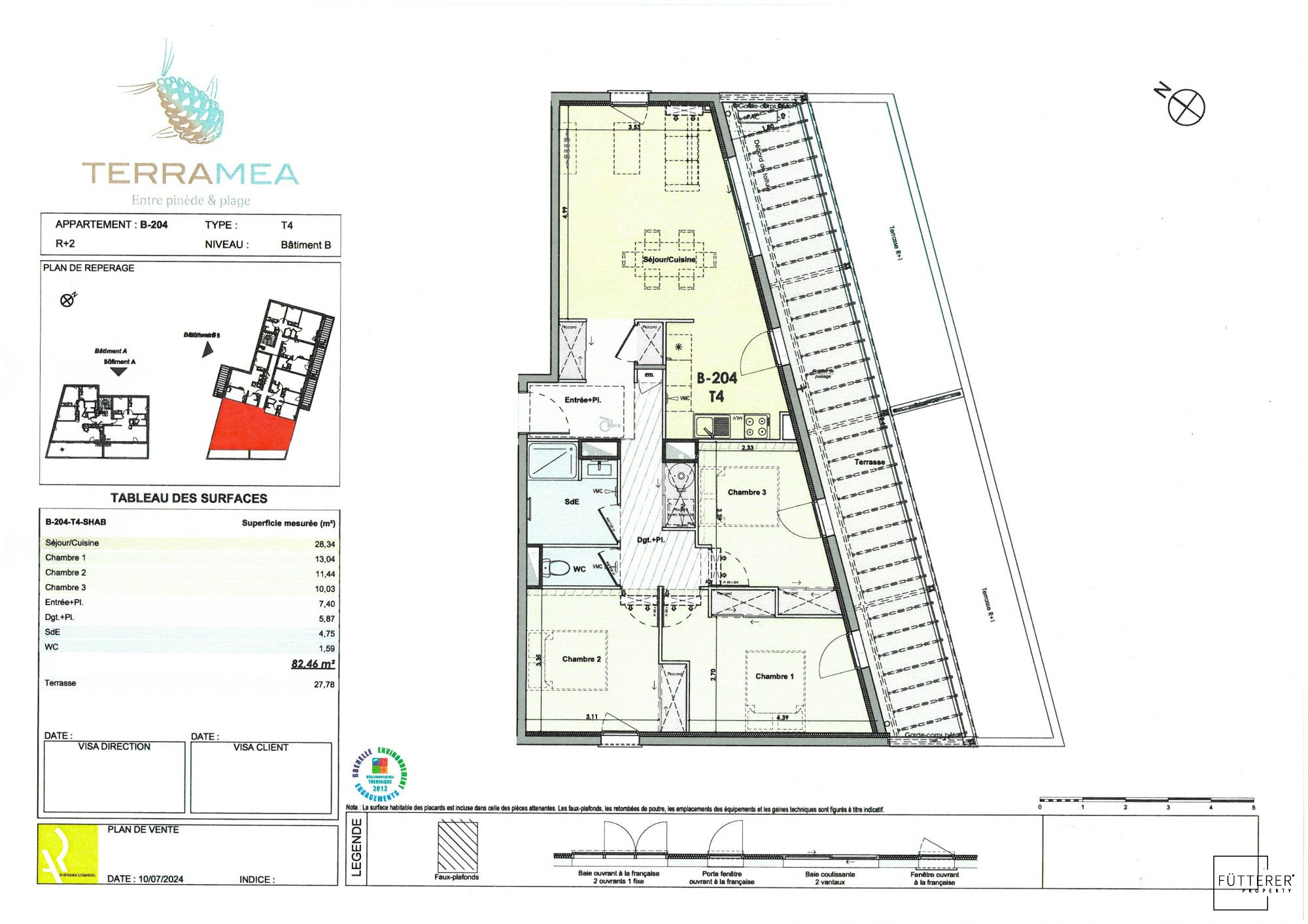 Appartements du T2 au T4 avec terrasses, VUE sur la mer, garage ou parking privatif. Prix à partir de de 159 900?*. -Appartement 4 pièces comprenant 1 entrée avec placard, couloir, séjour avec coin cuisine, 3 chambres, 1 salle d'eau, WC séparé, terrasse de 31,50m² avec VUE SUR LA MER (un grand garage et deux places de parking), pour une surface habitable totale de 83,20m². Prestations de qualité : résidence sécurisée, climatisation réversible, construction basse consommation, Vue sur la mer... *FRAIS DE NOTAIRES RÉDUITS de 2,5% - Belles prestations - Livraison juin 2026. Visitez notre site internet!