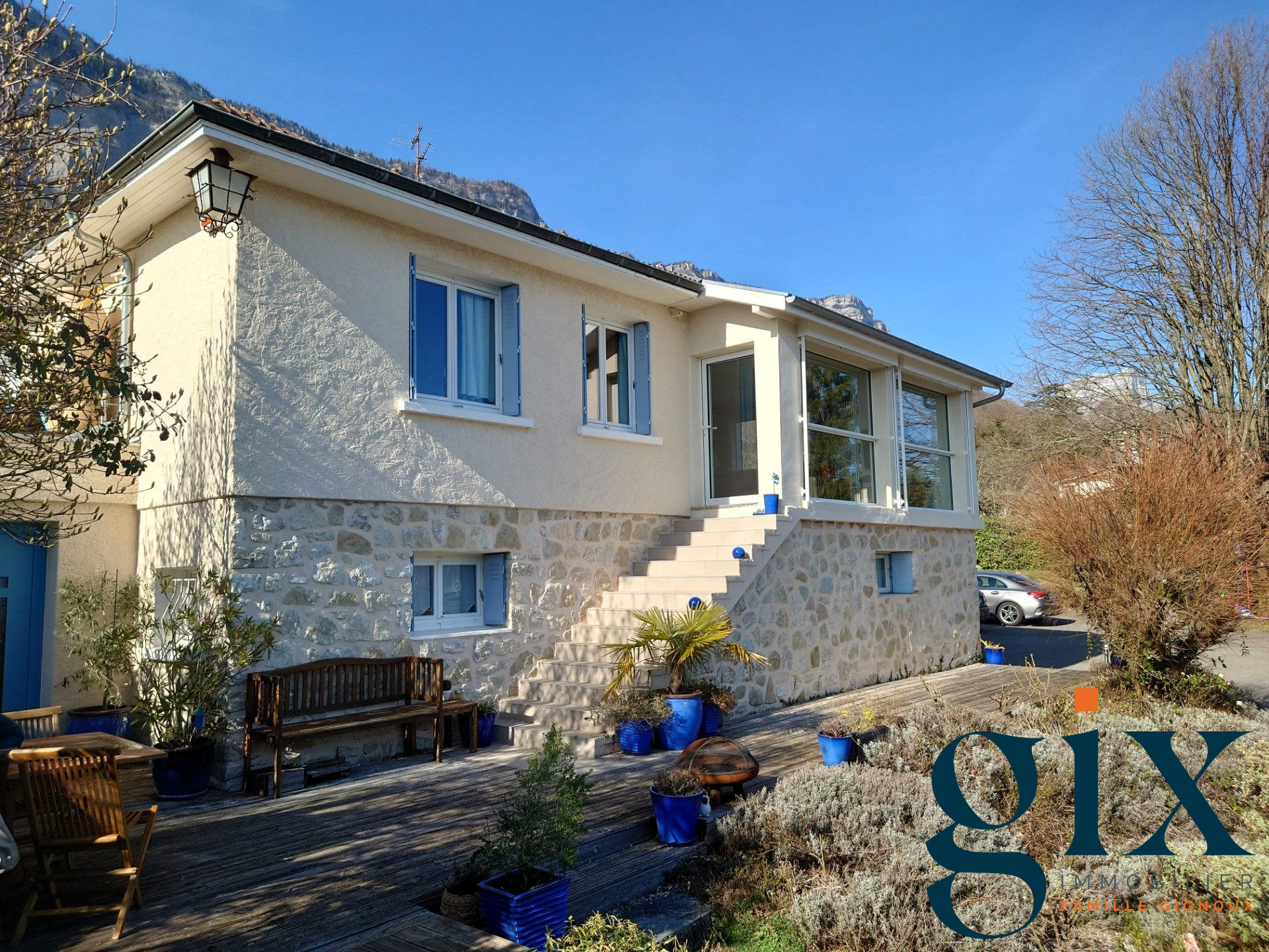 Biviers - Idéalement située au calme mais à 2 pas de l'arrêt de bus, cette jolie maison, rénovée avec goût en 2008 et agrandie en 2024, offre un cadre de vie exceptionnel. Située à l'écart de tout bruit de circulation, elle dispose à l'étage d'un séjour lumineux avec vue imprenable sur Belledonne, d'une salle à manger, d'une cuisine équipée, de 3 chambres dont une avec terrasse, d'une salle de bain et d'un WC. Au rez-de-chaussée, vous trouverez, une salle de jeux, deux grandes chambres dont une donne accès sur la terrasse et la piscine, une bibliothèque, un bureau, une salle d'eau, un WC et un garage transformé en buanderie et pièce de rangements. Le chauffage est individuel au gaz de ville complété par une climatisation à chaque niveau. L'ensemble sur un beau terrain paysagé avec plusieurs arbres fruitiers, d'une surface de 1227 m².